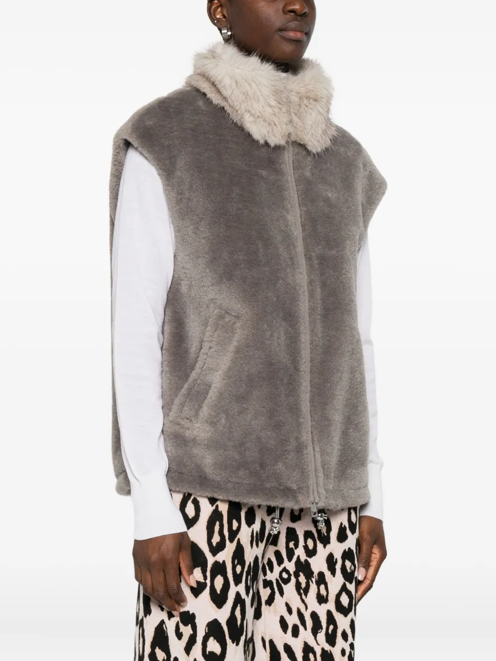 Жилет на молнии с меховым воротником Marccain, серый