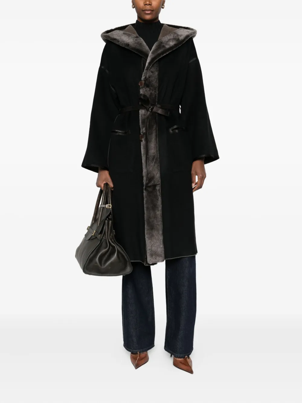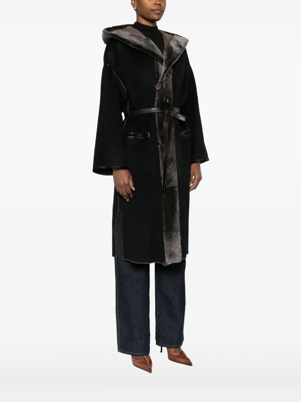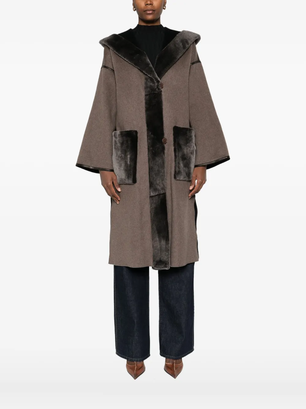Пальто с отделкой из меха Marester, коричневый