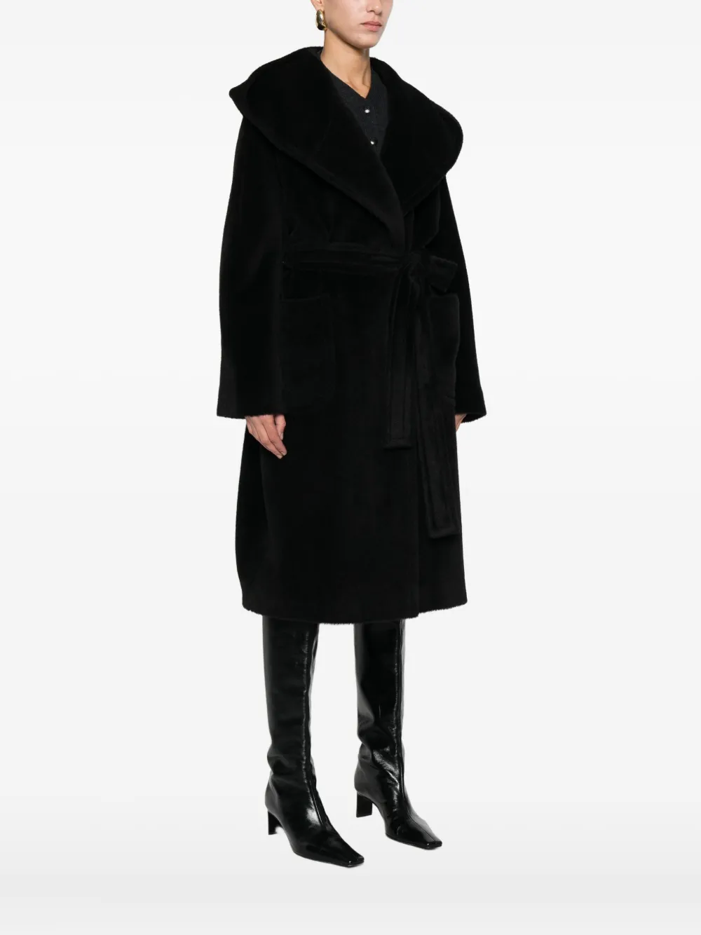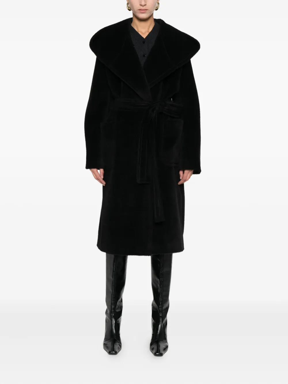 Пальто с капюшоном и поясом Tagliatore, черный