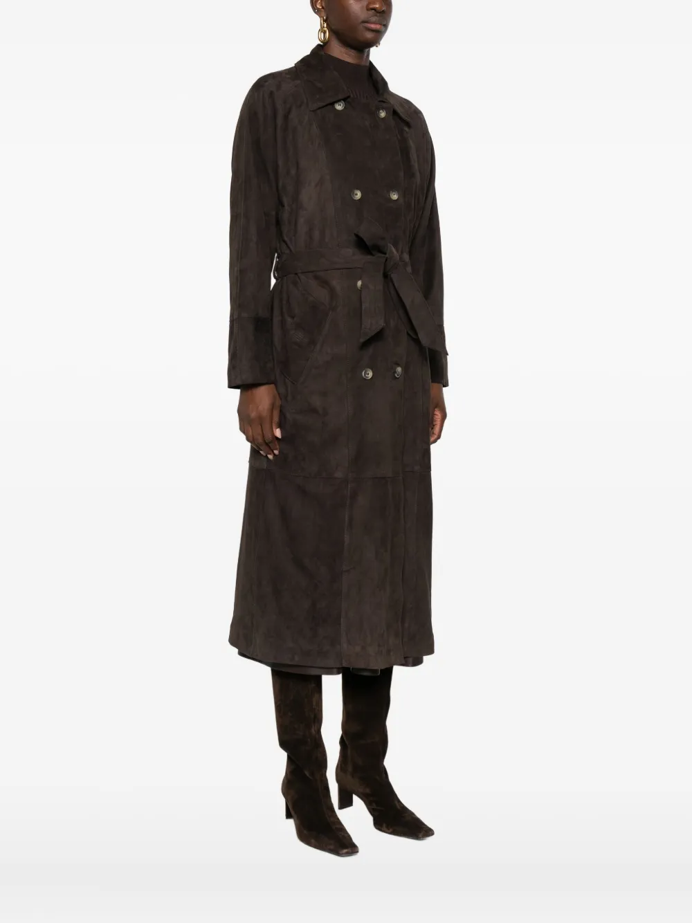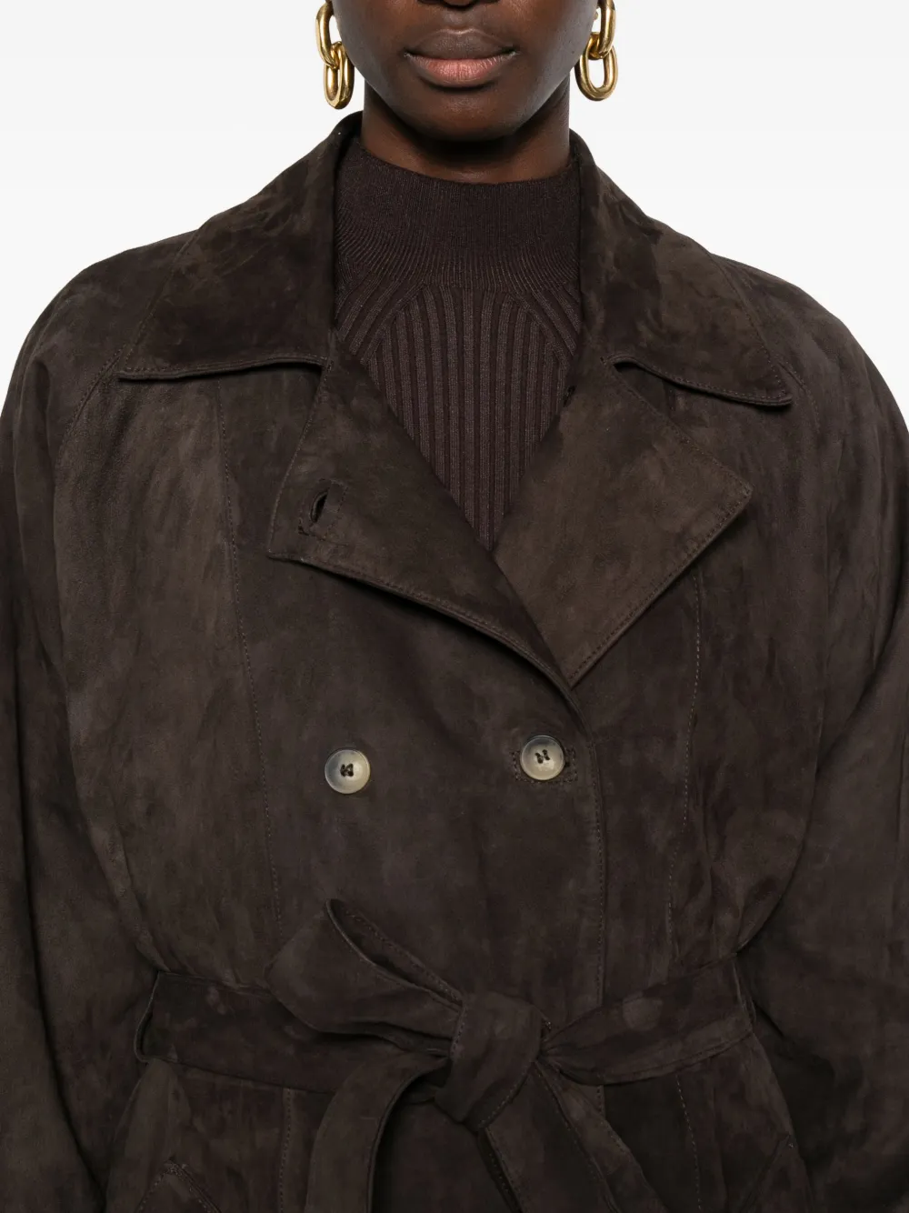 Кожаное двубортное пальто Mara Bini, коричневый
