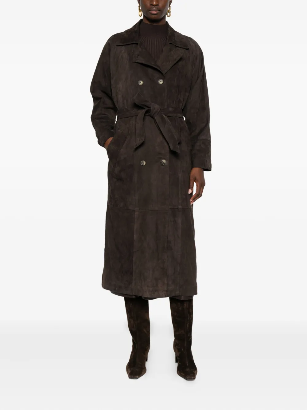 Кожаное двубортное пальто Mara Bini, коричневый 154 877₽