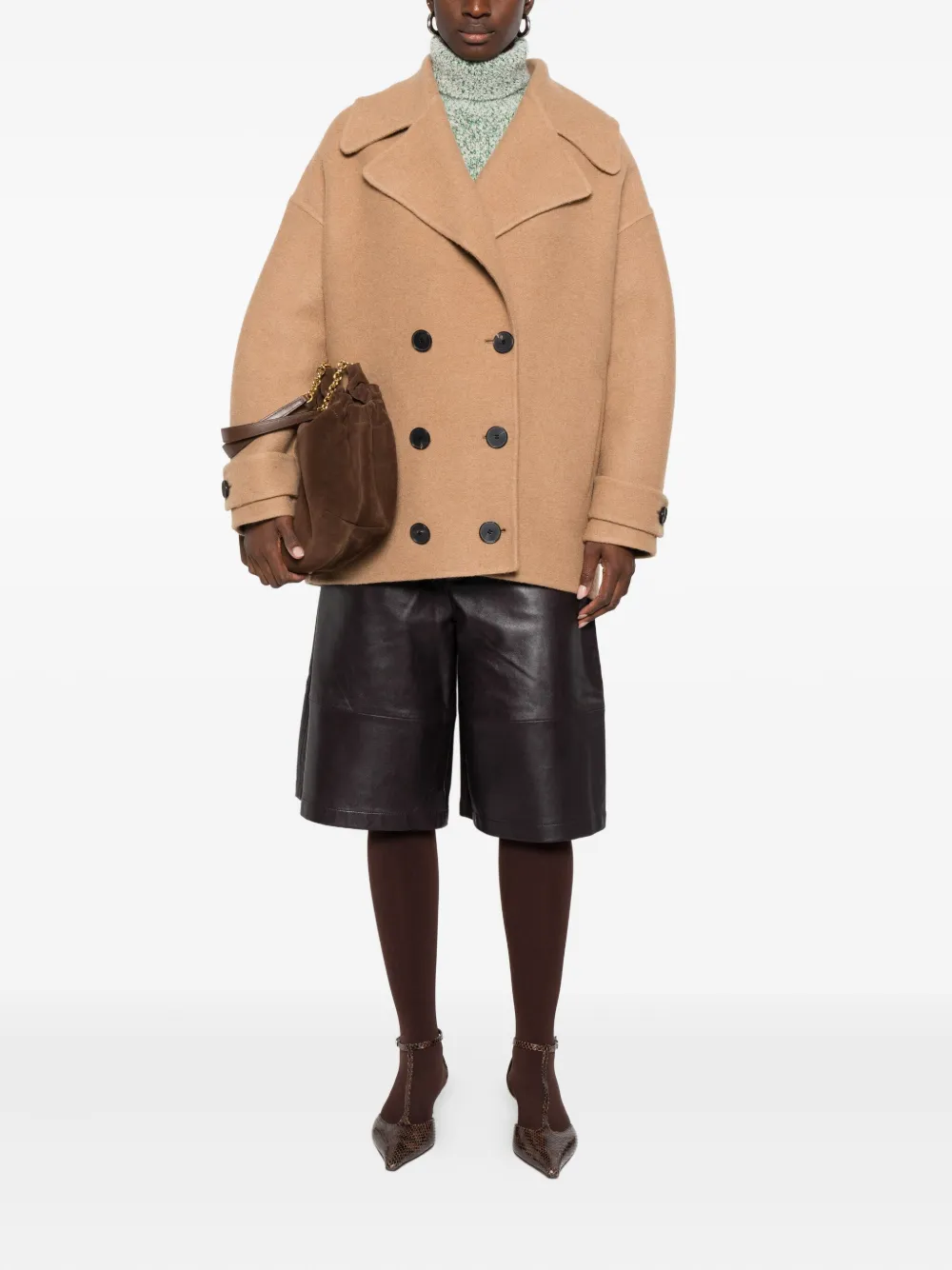 Двубортное пальто N7, коричневый