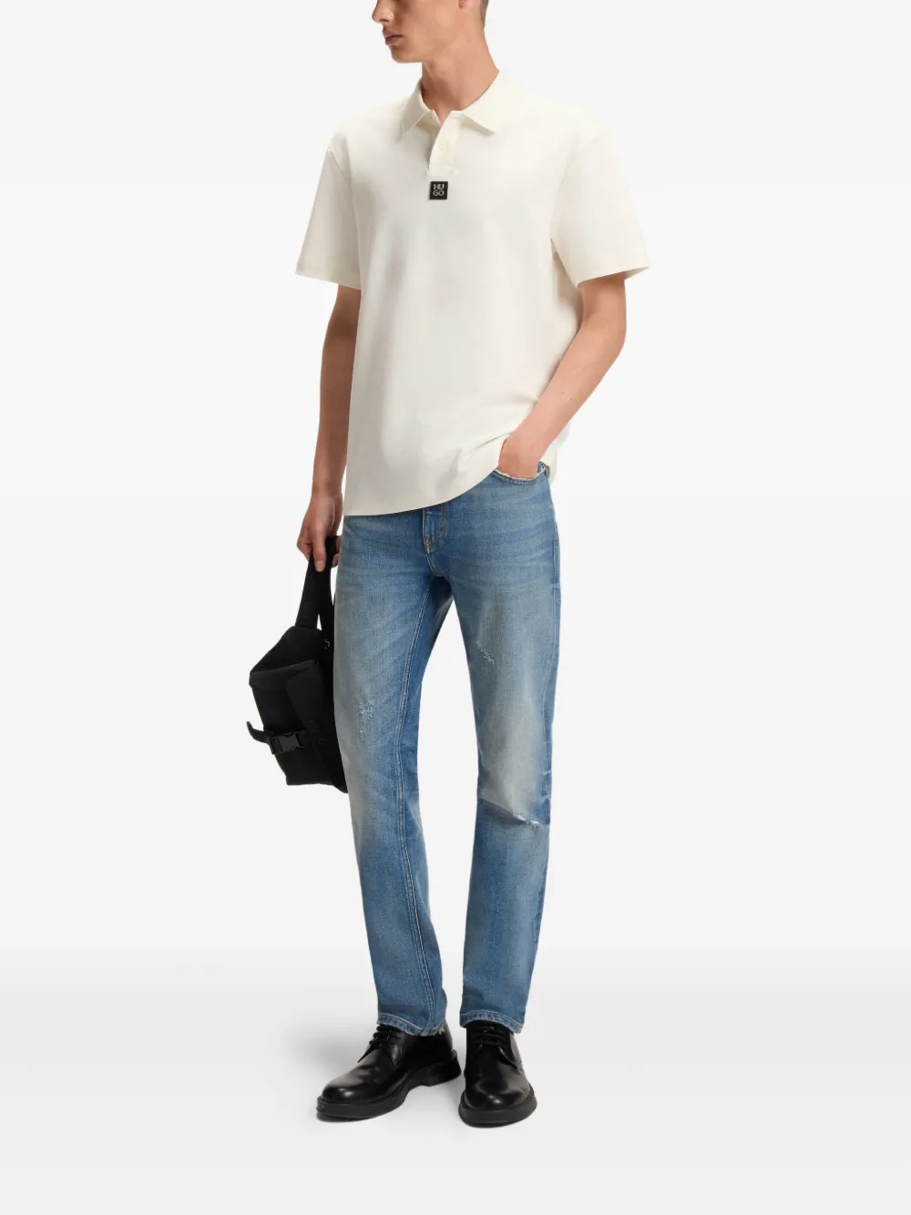Рубашка поло с нашивкой-логотипом Hugo, нейтральный