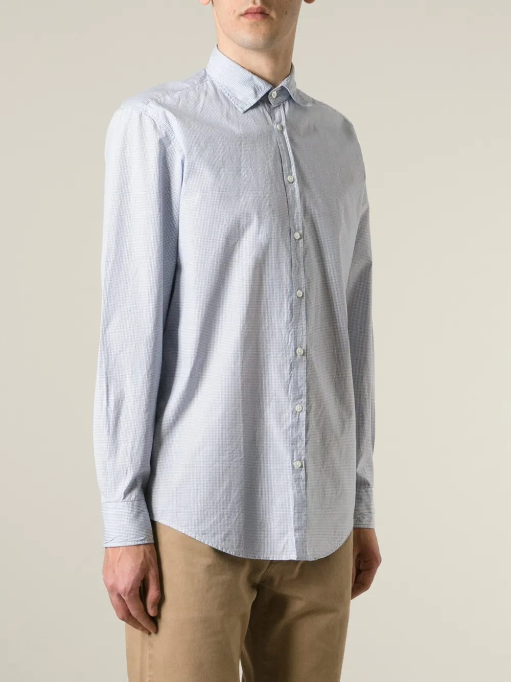 Голубая с белым хлопковая рубашка в клетку 'Genova' от Massimo Alba.