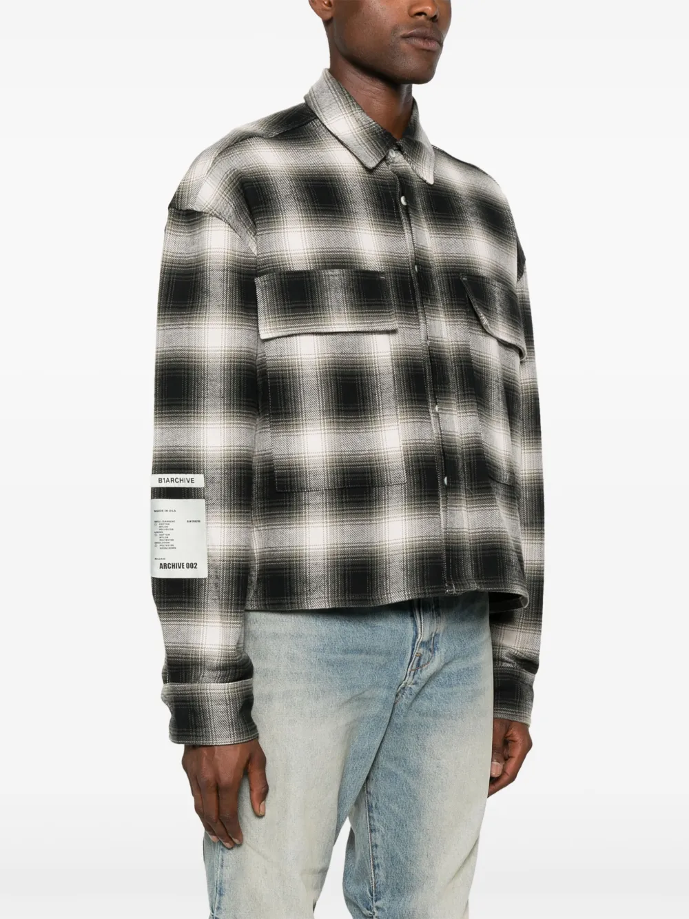 Клетчатая рубашка с нашивкой-логотипом B1Archive, серый