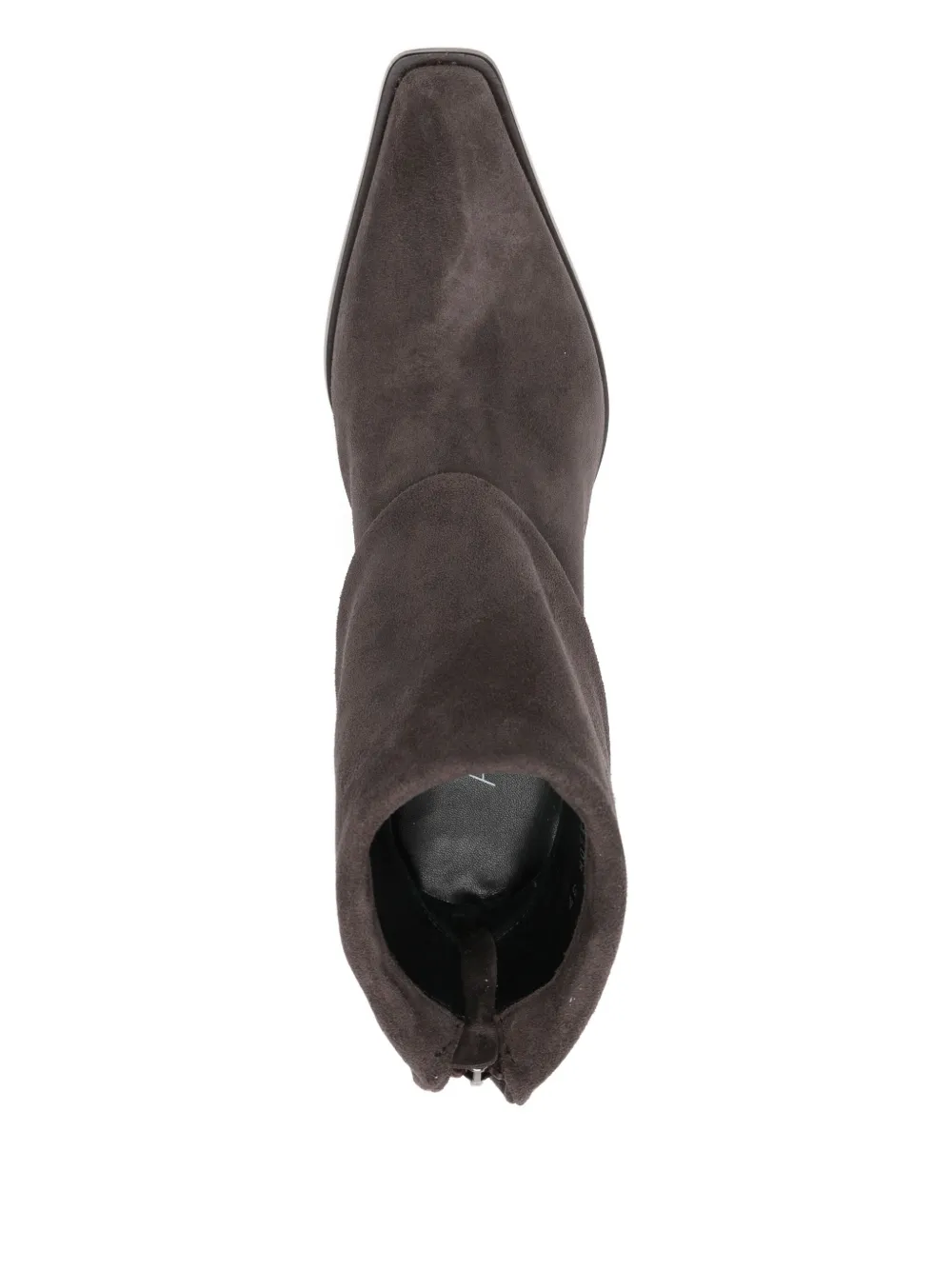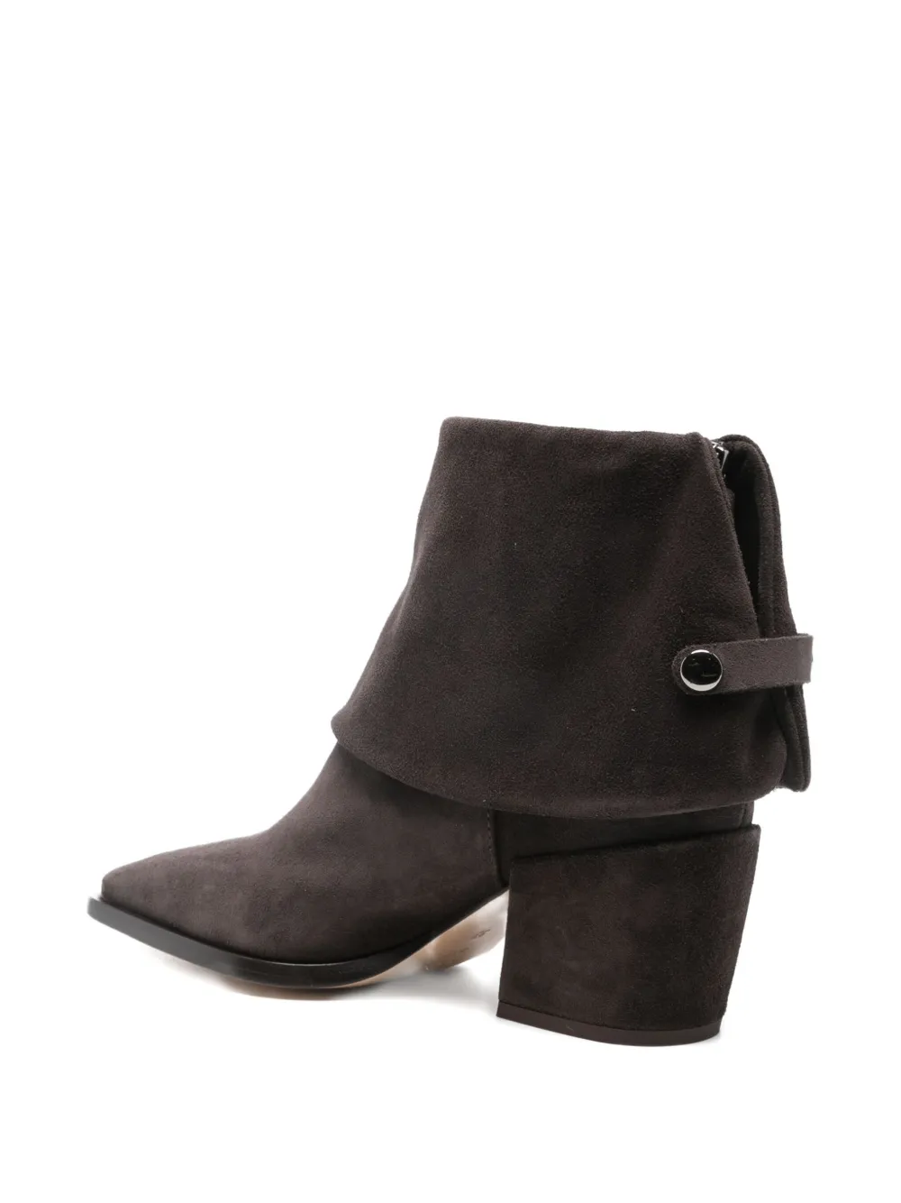 Темно-коричневый цвет, застежка сзади на молнии, заостренный носок, складной дизайн, каблук-«кирпич»