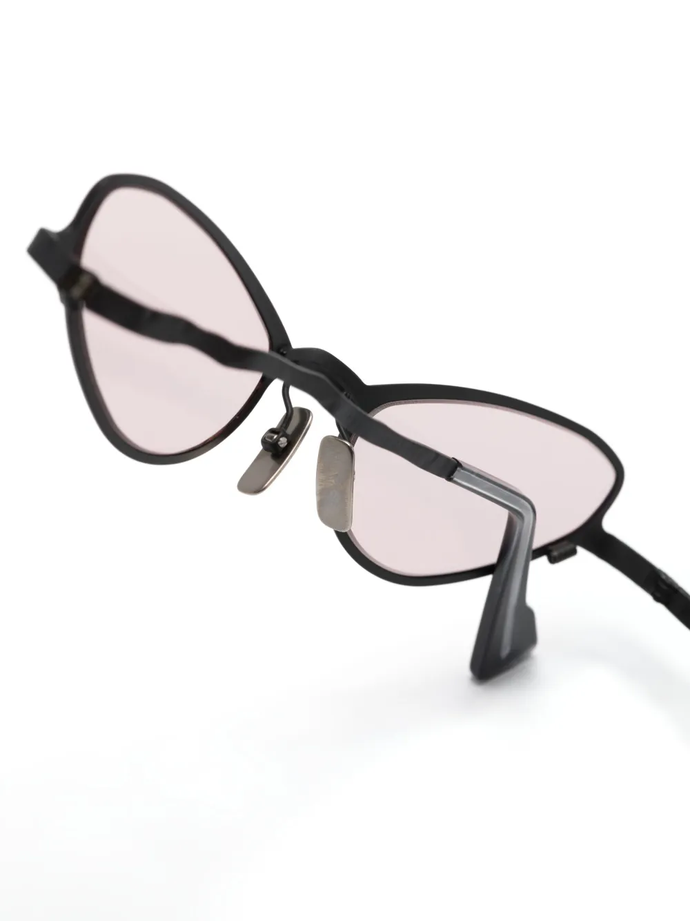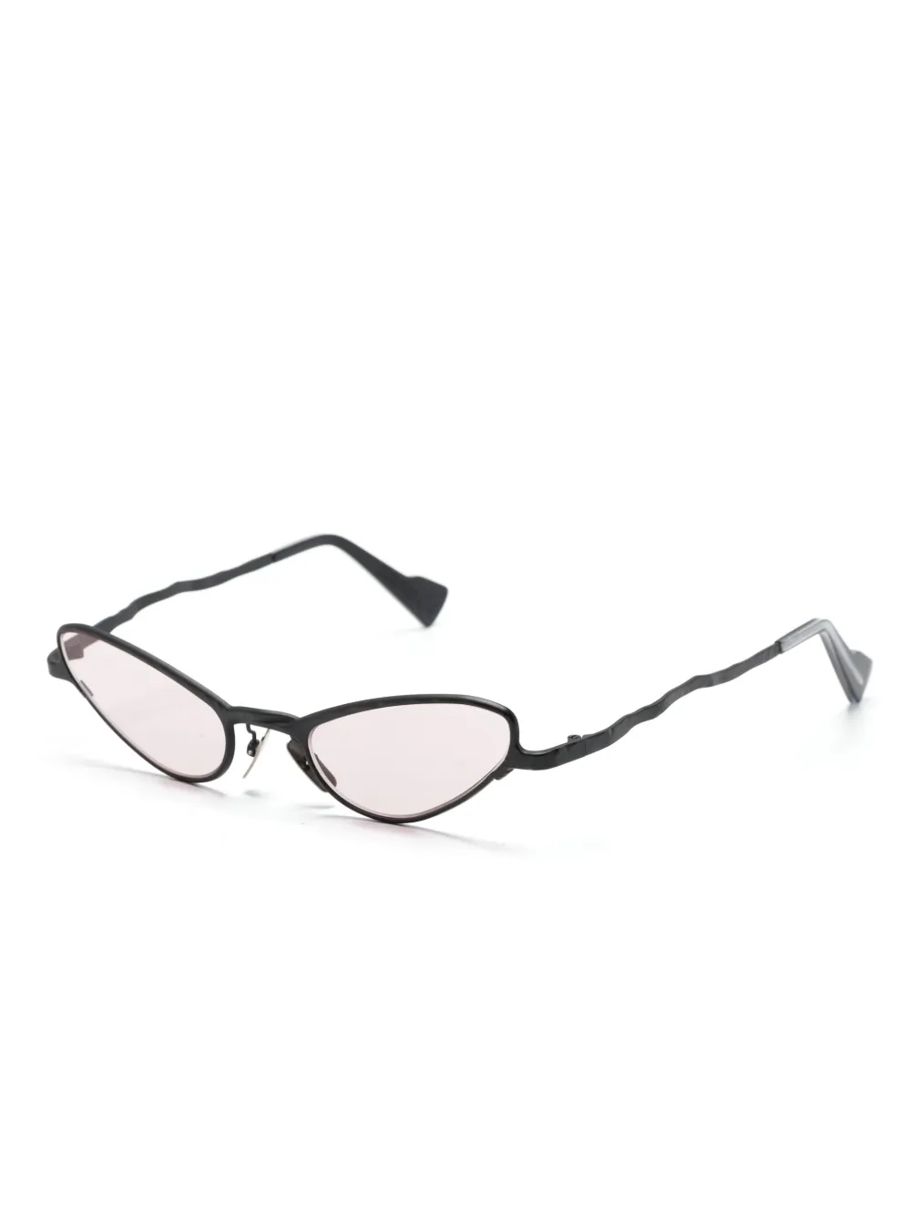 Черный, металл, оправа «кошачий глаз», розовые линзы, защита от ультрафиолетового излучения, носоупоры, прямые дужки и дужки с закругленными концами. В комплект входит защитный чехол для очков.