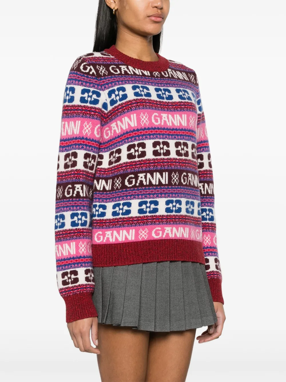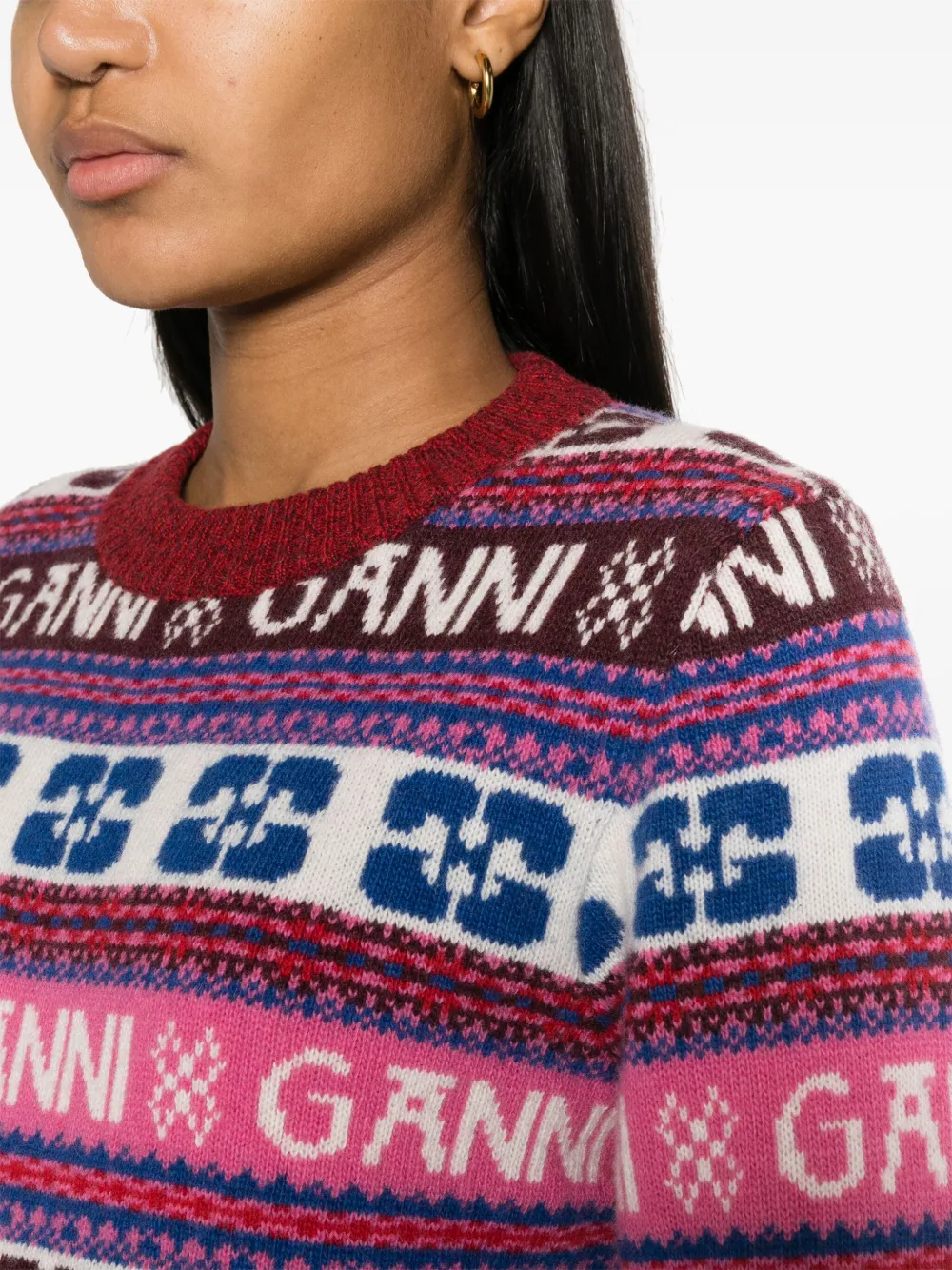 Джемпер вязки интарсия Ganni, фиолетовый