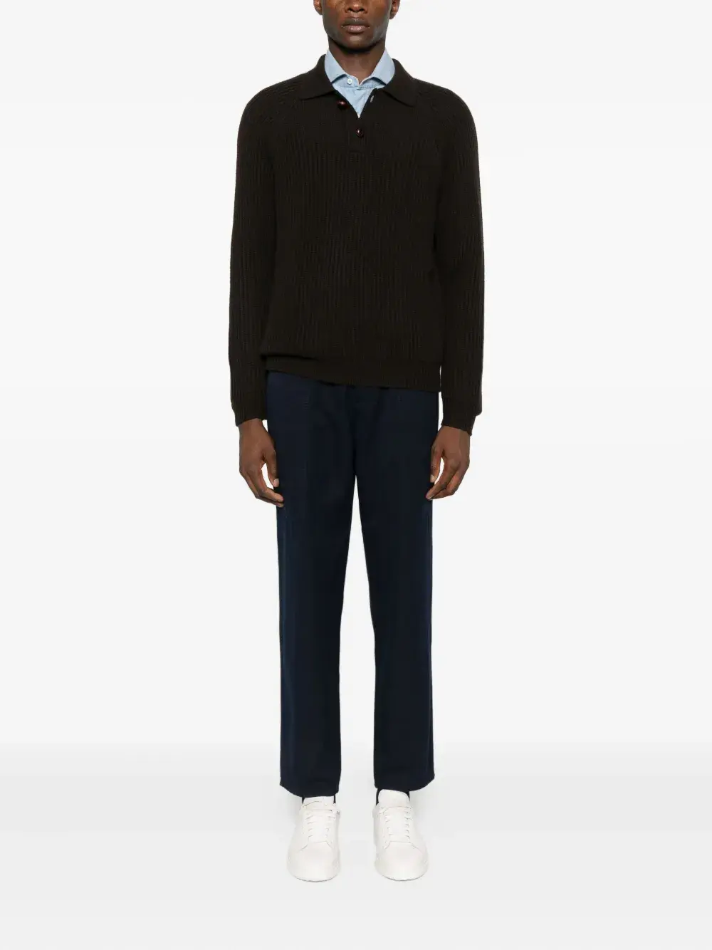 Темно-синие хлопковые брюки с панельными вставками, застежкой на пуговицы, шлевками для ремня и декоративной строчкой