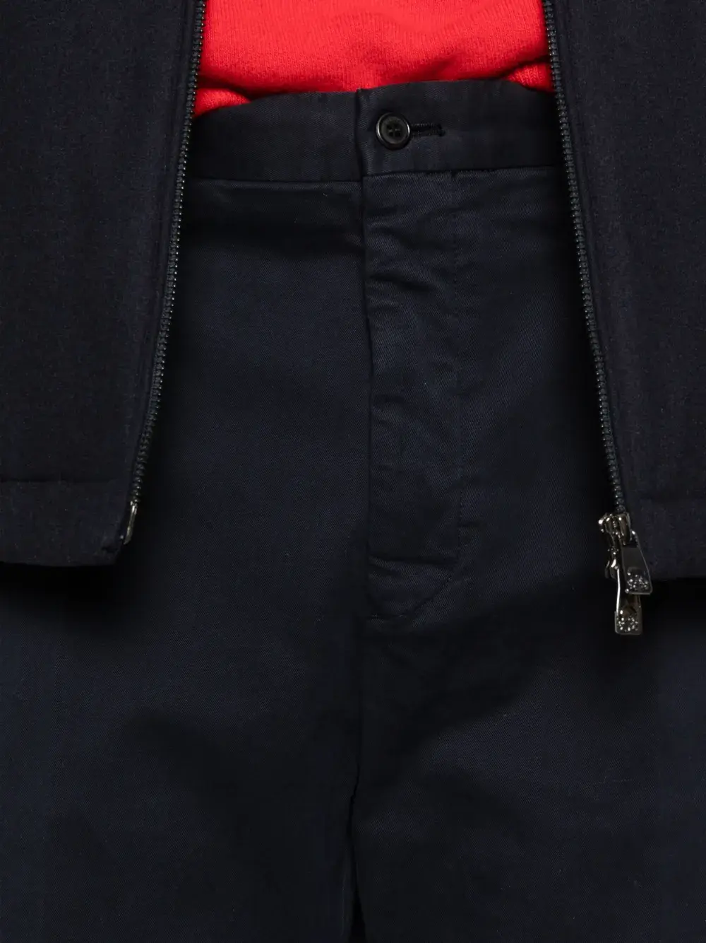Черные шлевки для ремня, боковые карманы, задние карманы, застежка спереди на молнии, однотонная прострочка