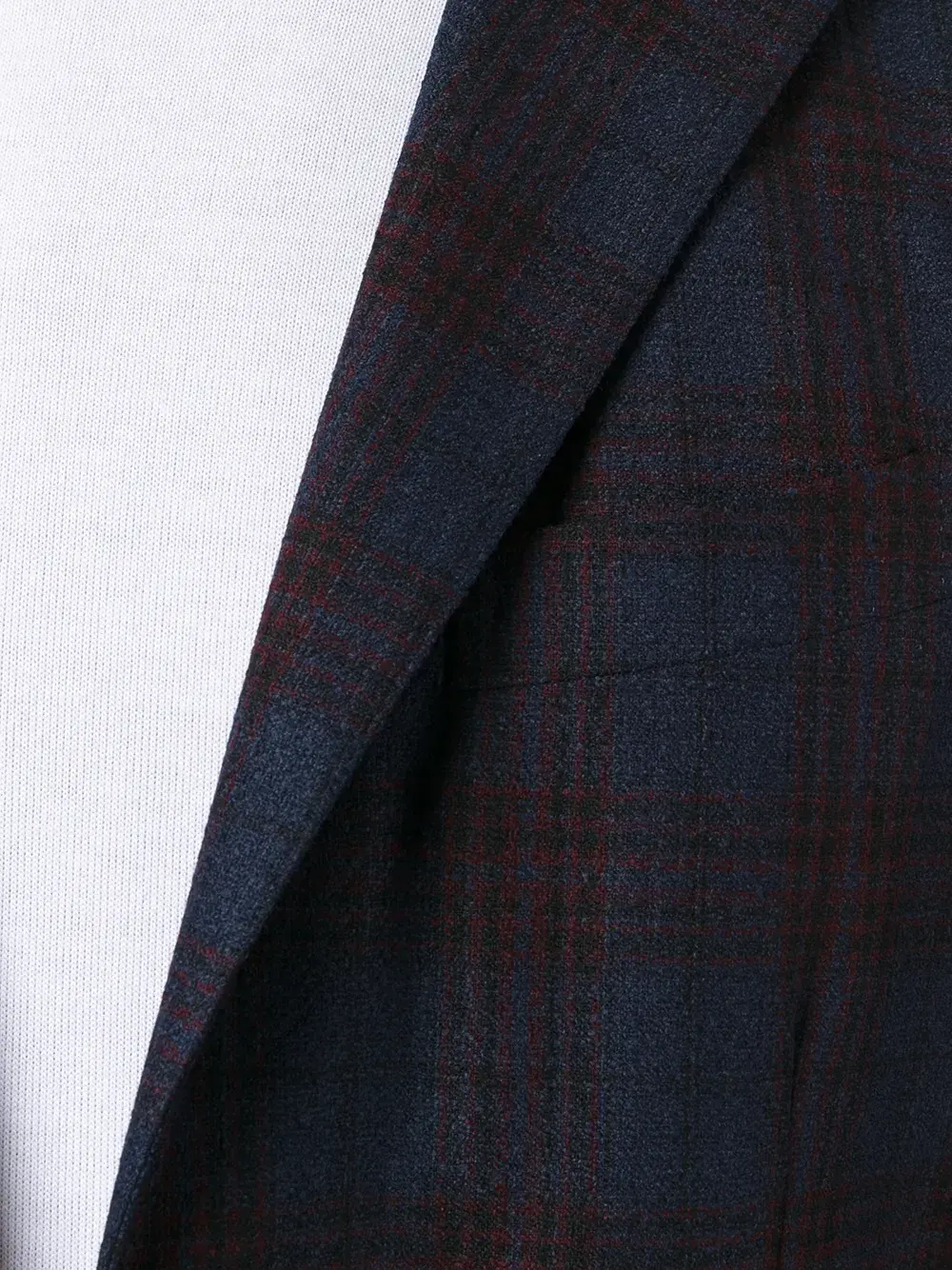 Синий с темно-фиолетовым шерстяной блейзер в клетку от Boglioli.