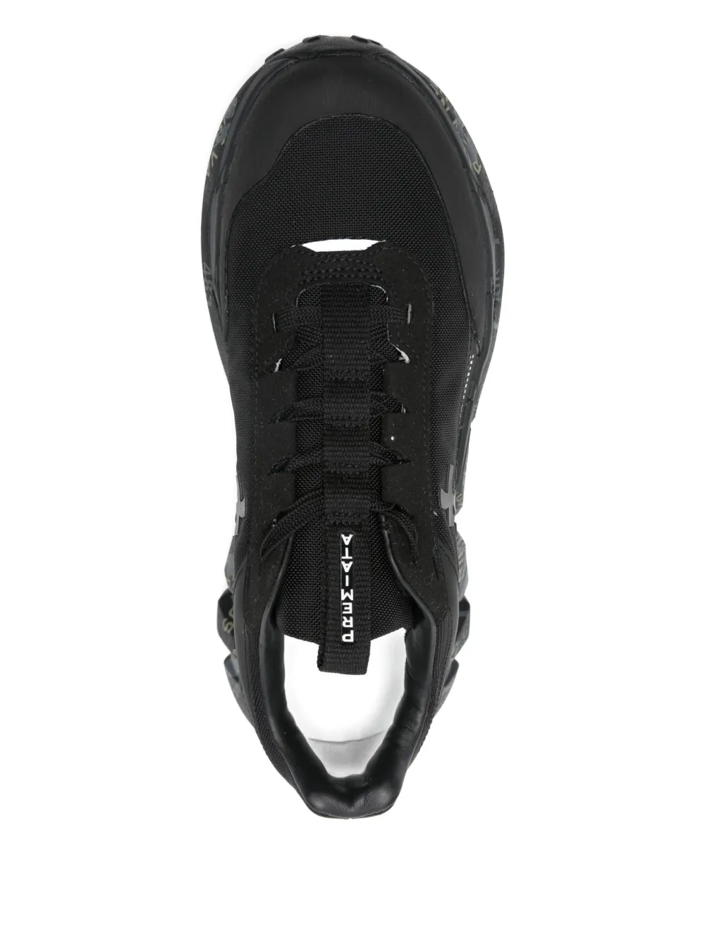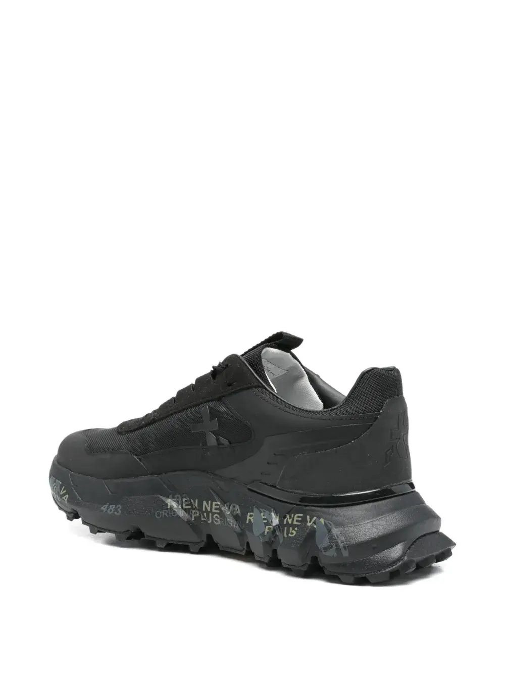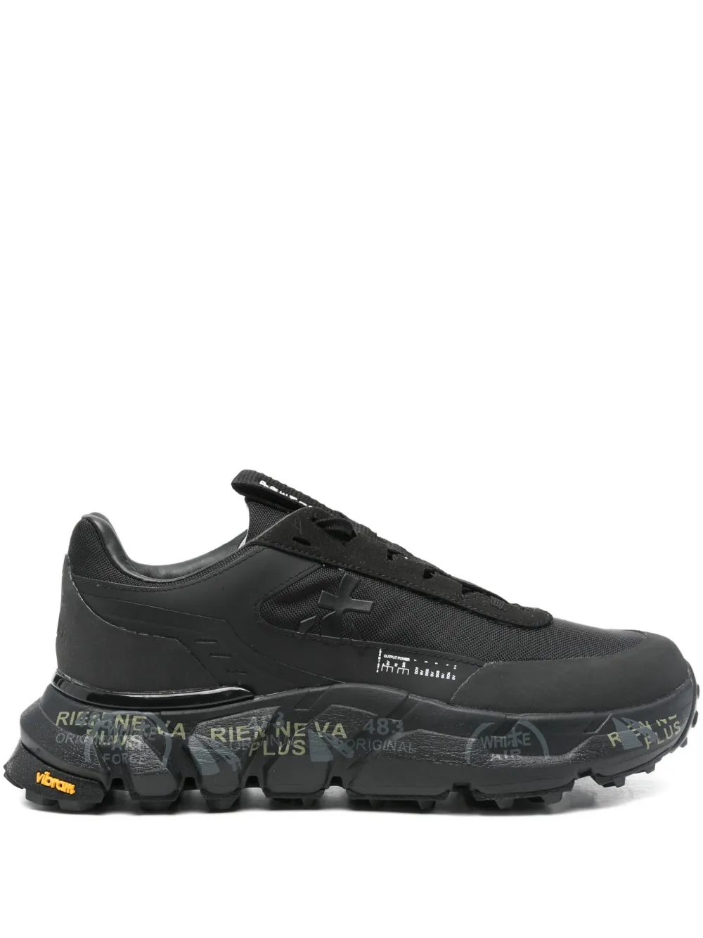 Черная платформенная подошва, надпись на подошве, шнуровка, петля для обувания, логотип