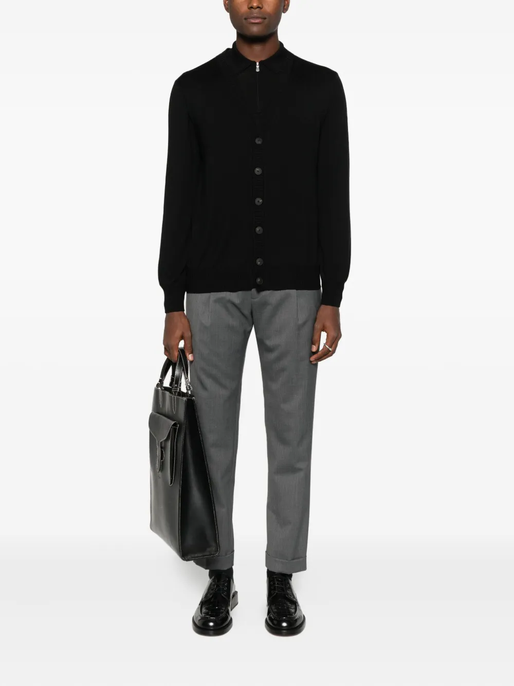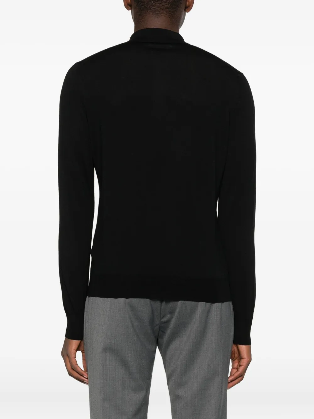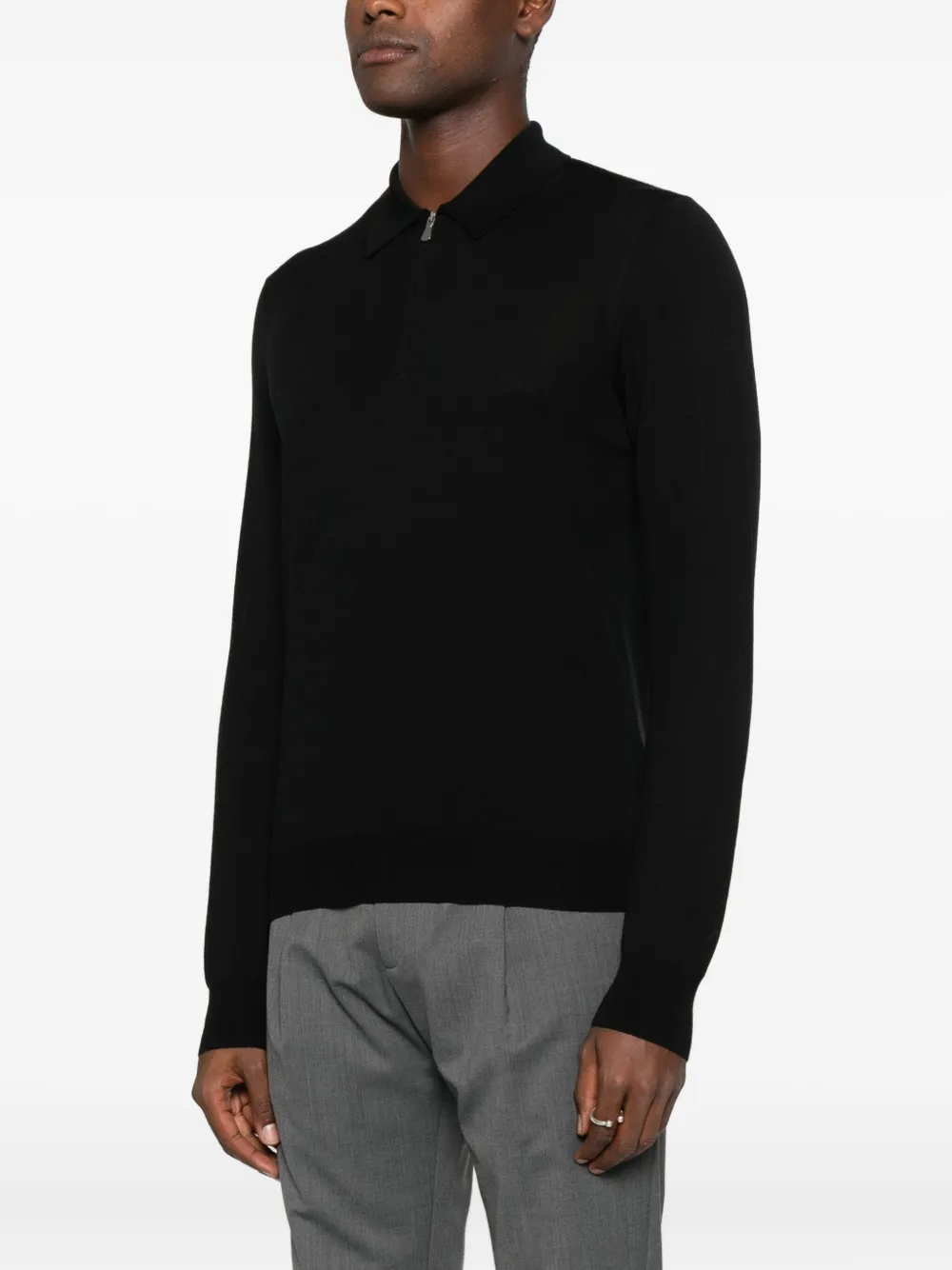 Черная шерстяная рубашка-поло с длинными рукавами, молниями и прямым подолом
