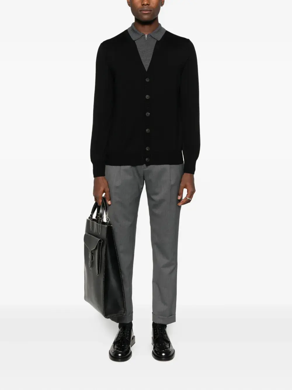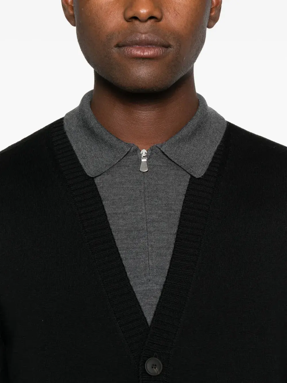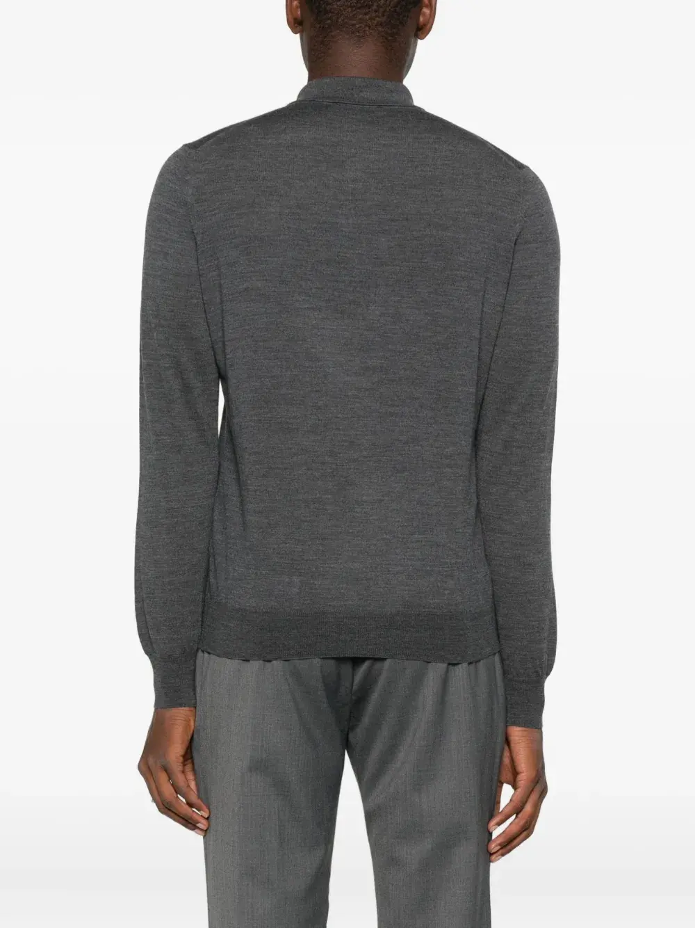 Темно-серый джемпер с молнией, длинными рукавами, поло-воротником, тонкой вязкой и ребристым краем