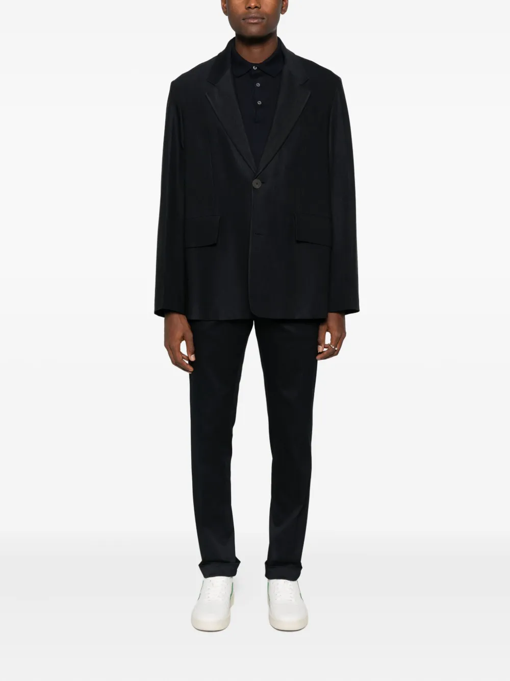 Темно-синий пуловер из шерстяной смеси, застежка на пуговицы, длинные рукава, прямой подол, тонкая вязка