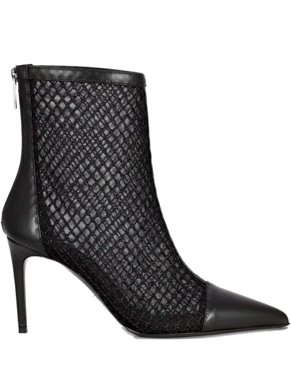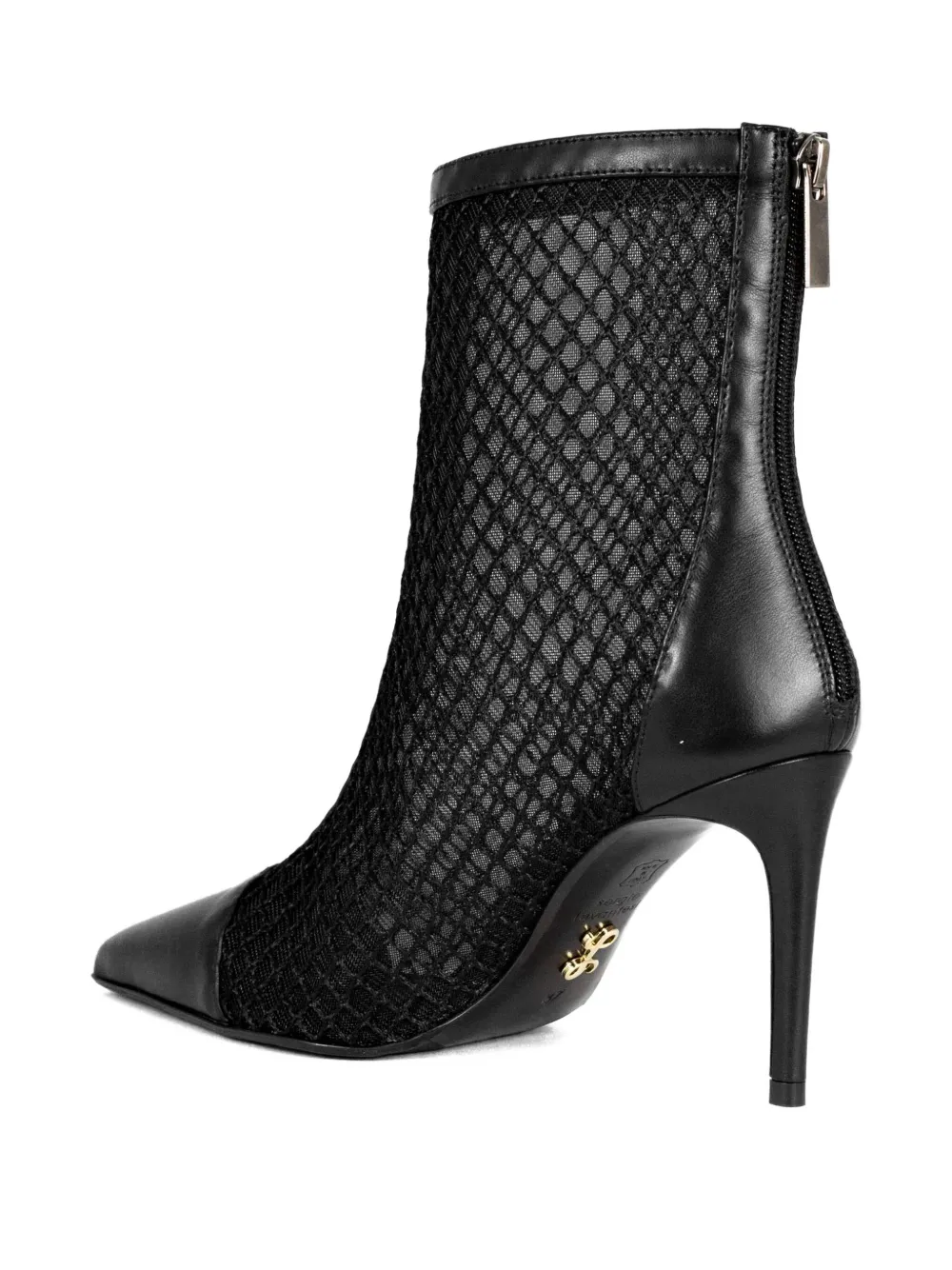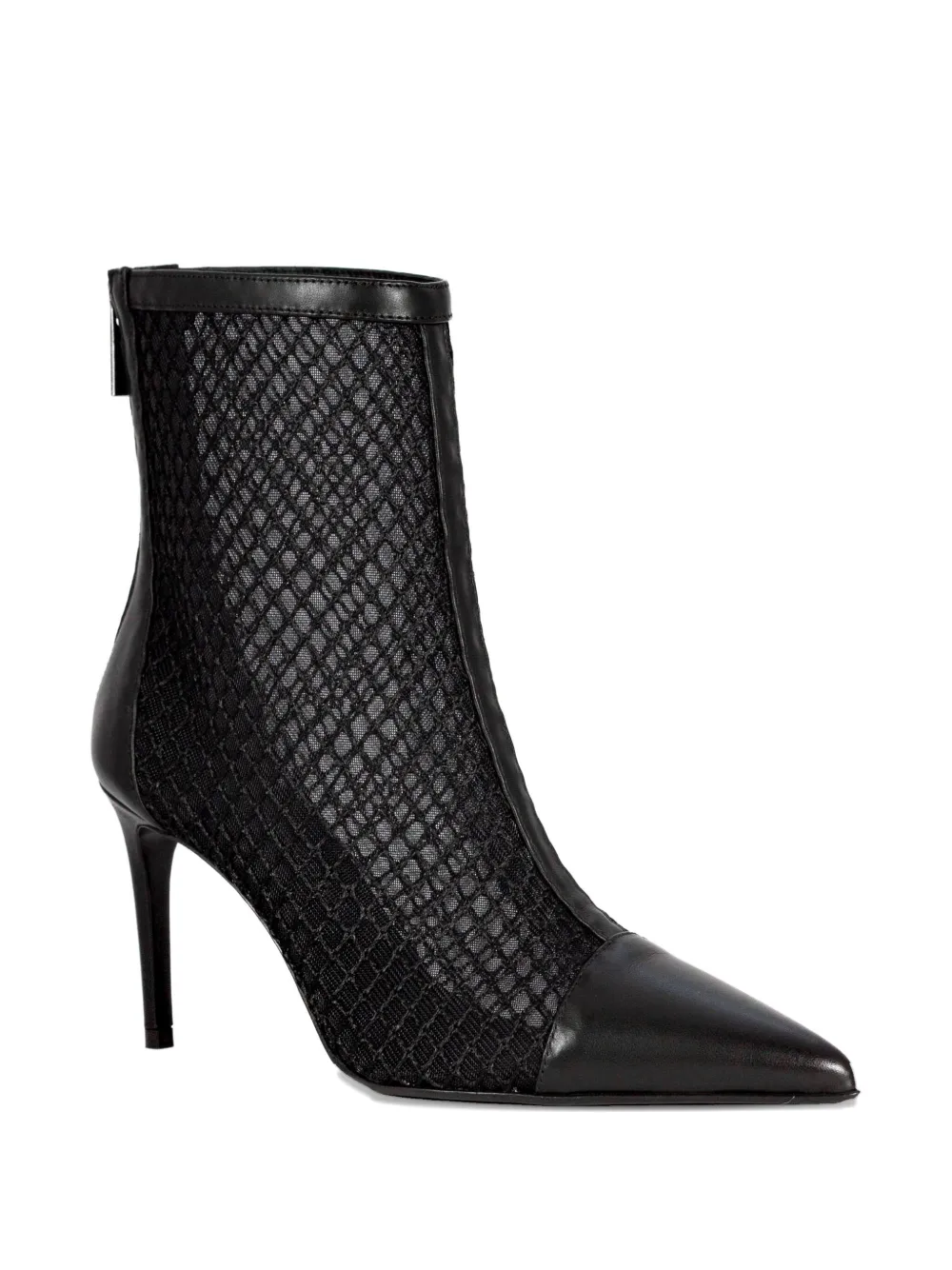 Черные туфли с сетчатыми вставками, заостренным носком, застежкой-молнией сзади, каблуком 8 см, логотипом на подошве