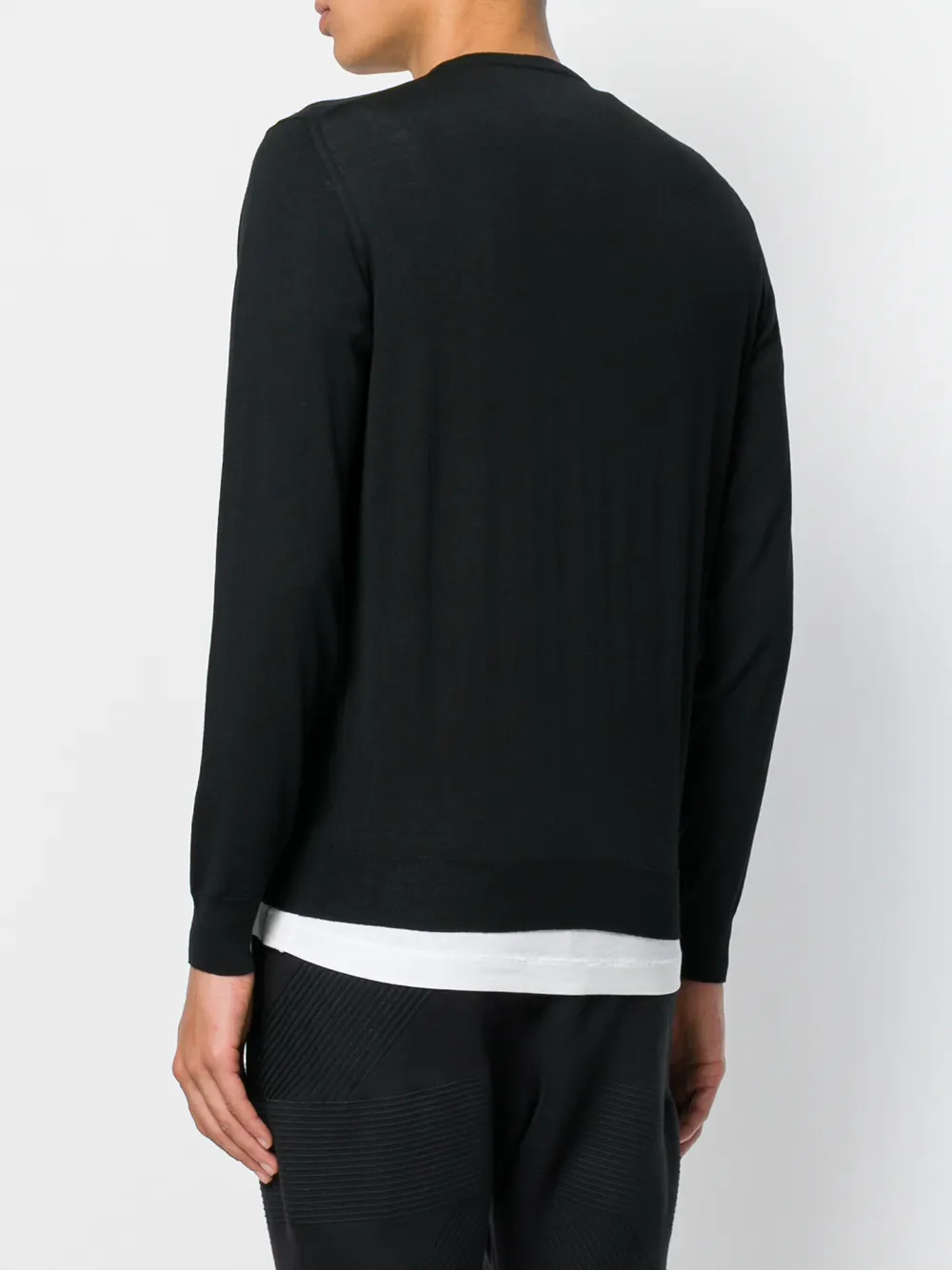 Черный джемпер из мериносовой шерсти с V-образным вырезом от Drumohr.
