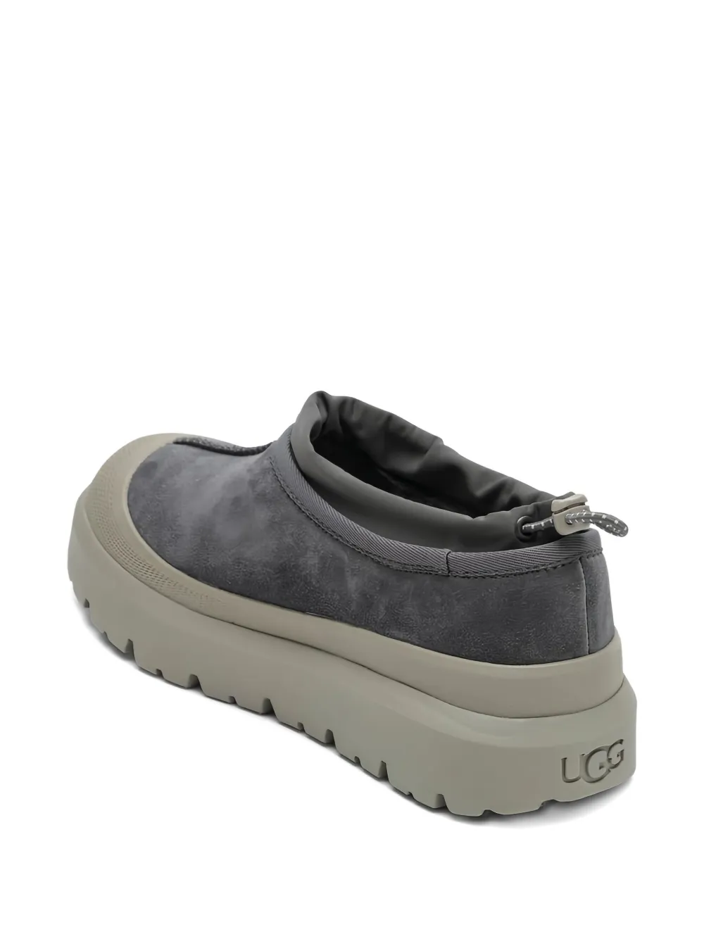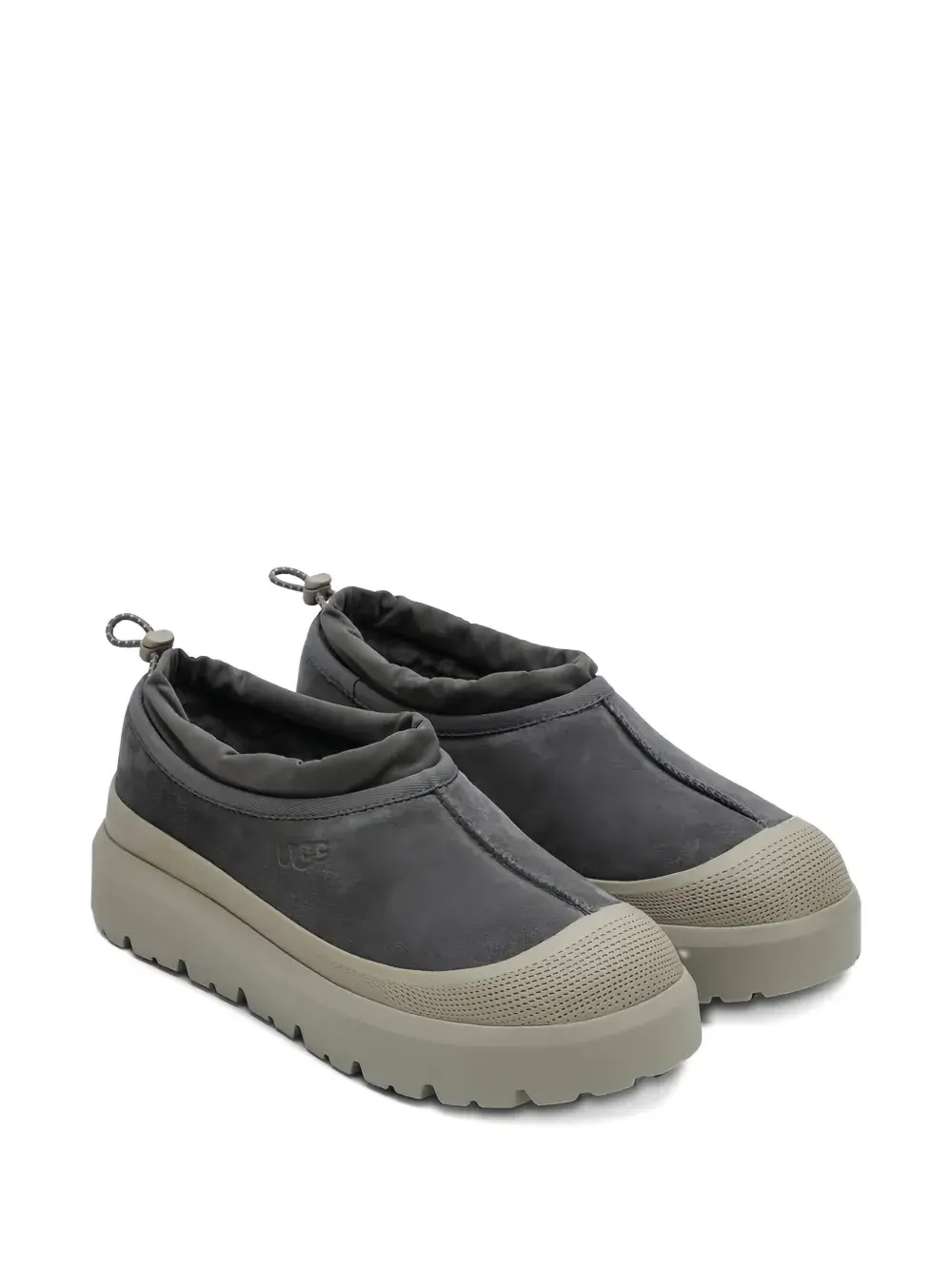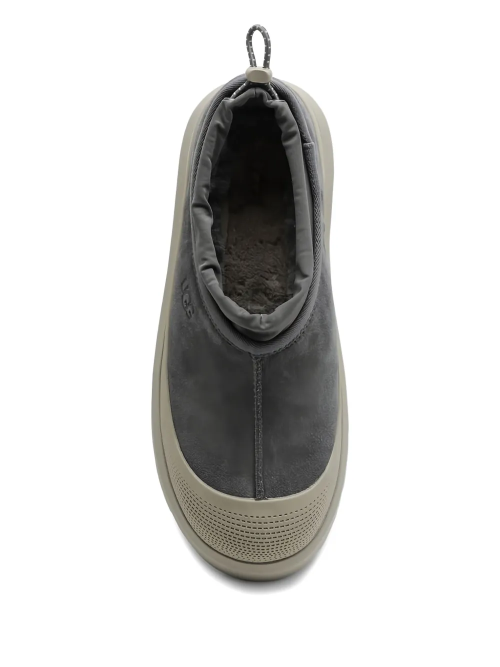 Серый цвет, модель без застежки, с петлей для легкого надевания, рифленая подошва, круглый носок, платформенная подошва