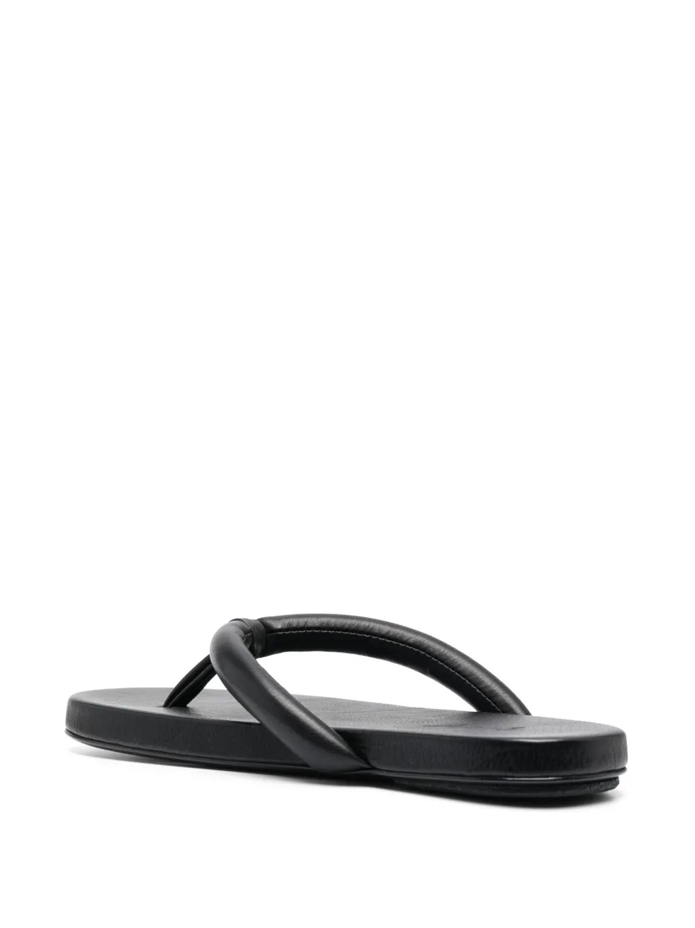 Черный, телячья кожа, гладкая текстура кожи, зернистая текстура, Т-образный ремешок, стелька с логотипом, открытый носок, закругленный носок, модель без застежки и плоская кожаная подошва.