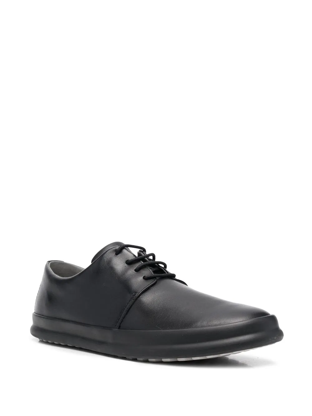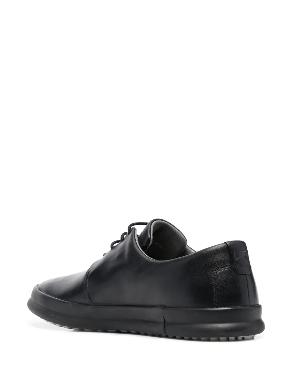 Шнуровка спереди, тисненый логотип на язычке, закругленный носок, стелька с логотипом и плоская резиновая подошва. Цвет: черный. .