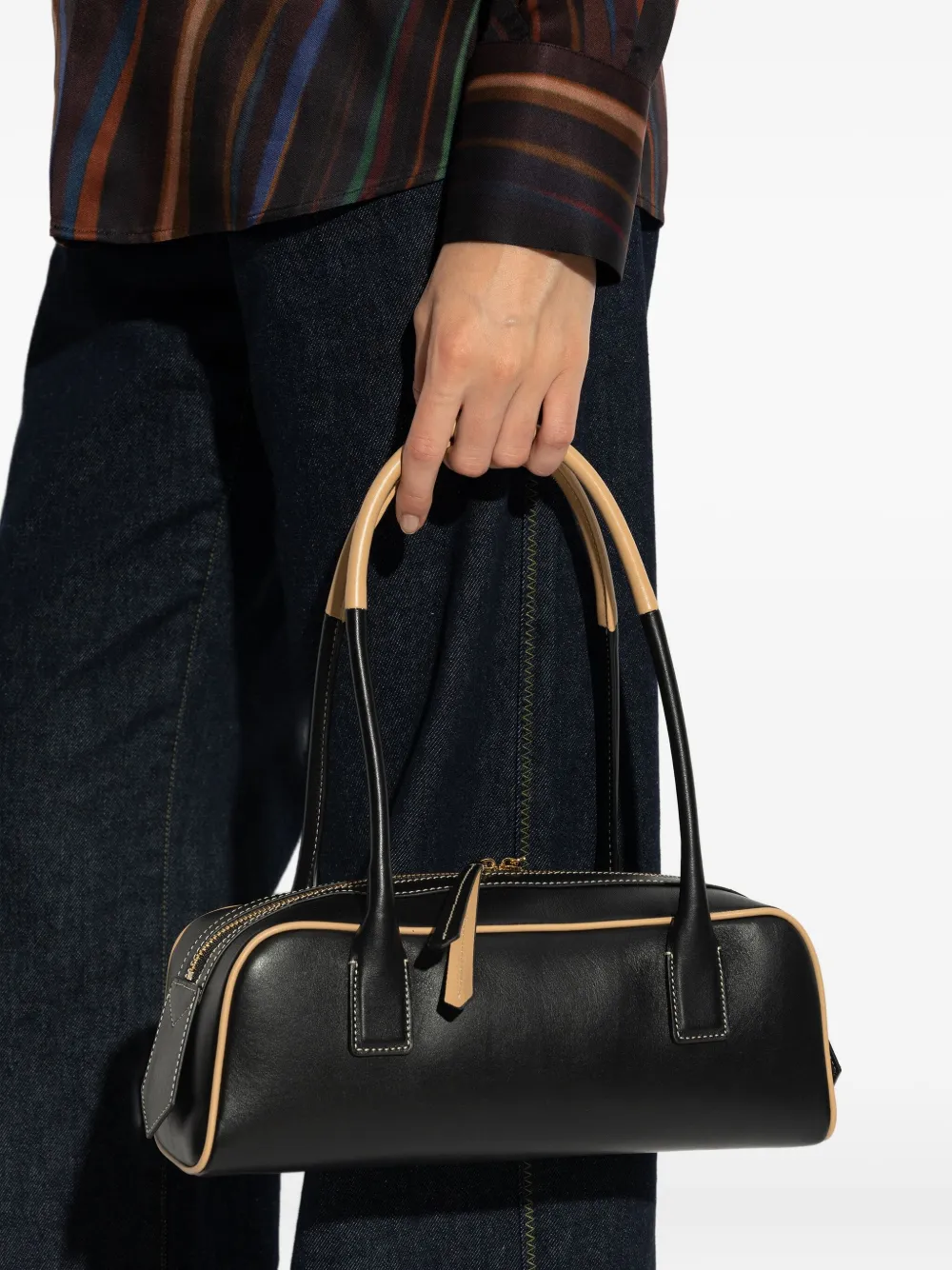Черные контрастные строчки, двойная застежка на молнии, верхние ручки