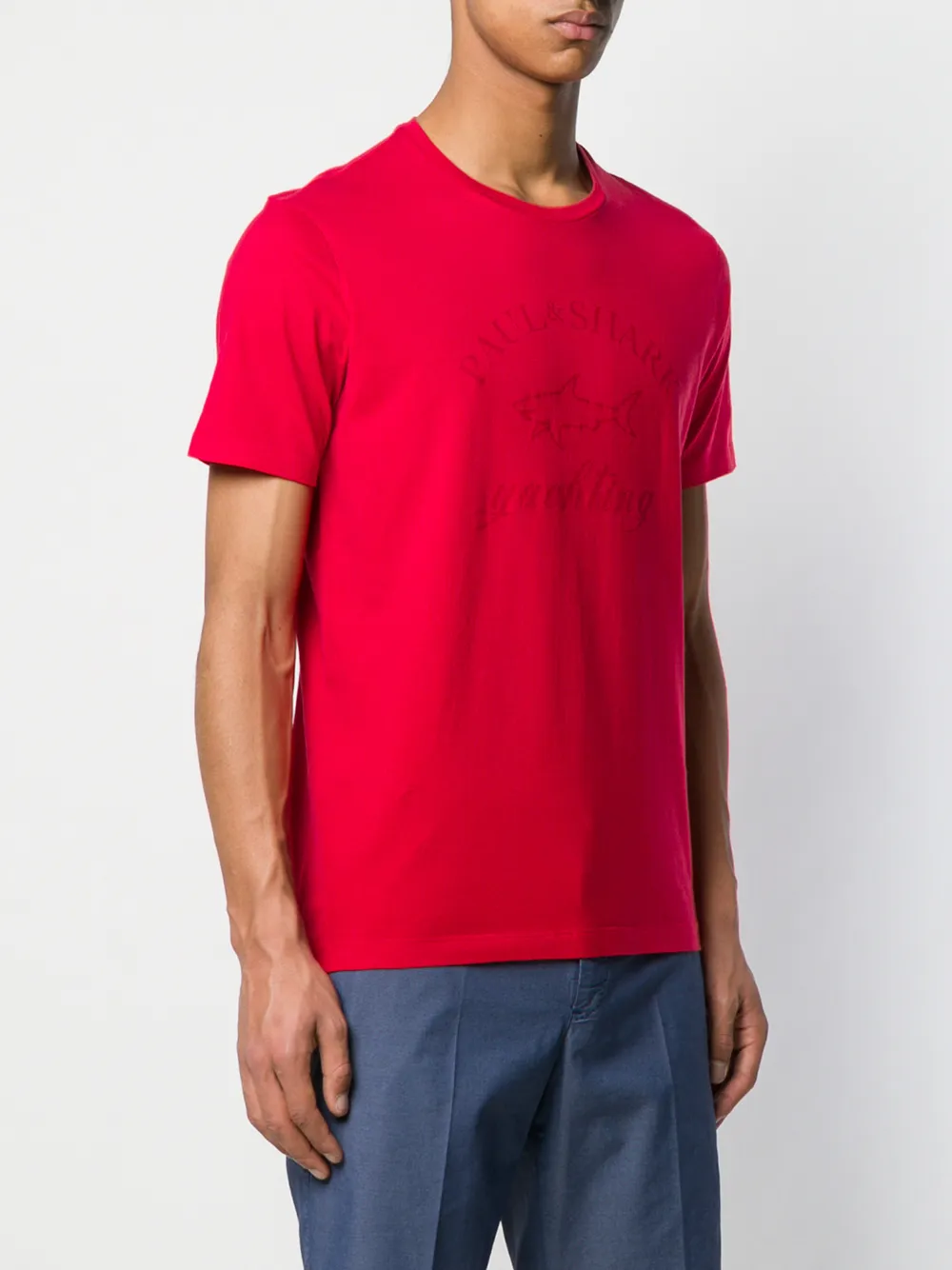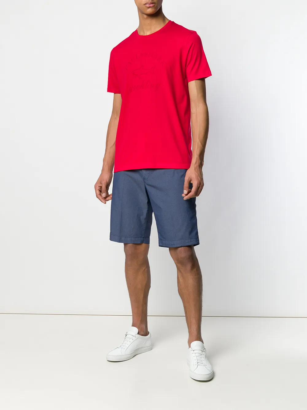 Футболка с логотипом от Paul & Shark. Круглый вырез, короткие рукава, свободный крой и прямой подол. Цвет: красный.