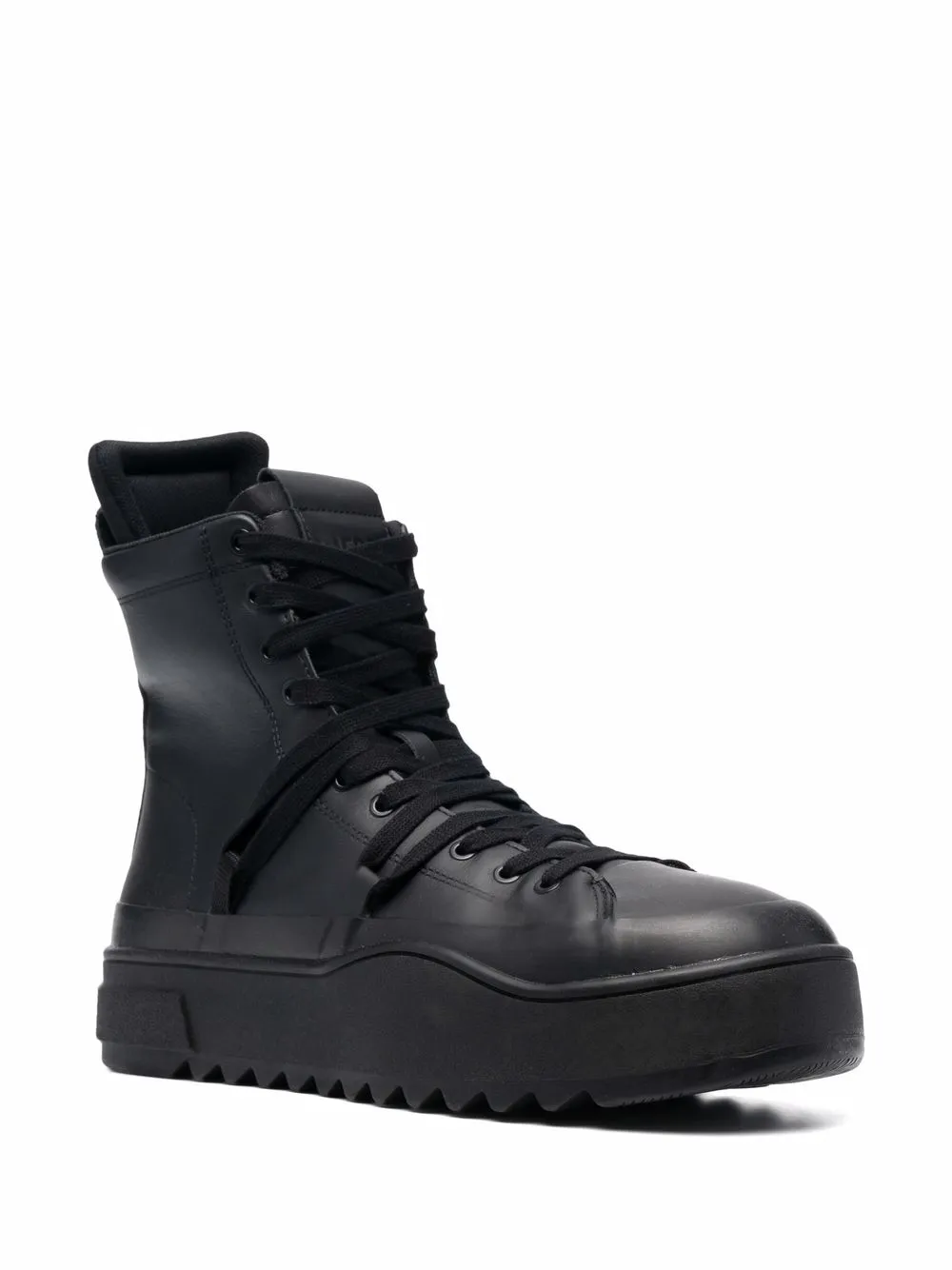 Петля для подтягивания сзади, закругленный носок, шнуровка спереди, стелька с логотипом и плоская резиновая подошва. Цвет: черный.