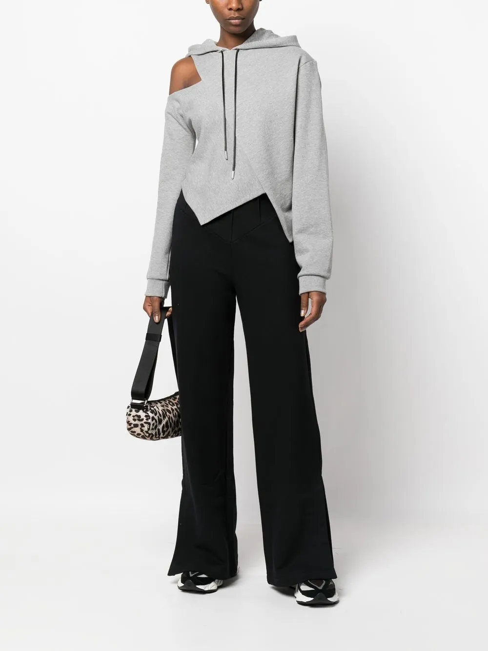 Черный, хлопок, ткань джерси, широкий крой, эластичный пояс, складки и боковой разрез.
