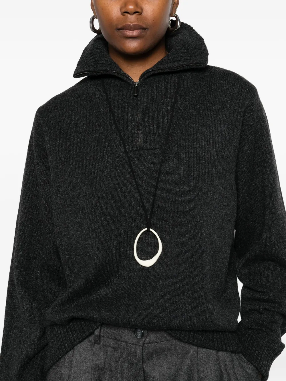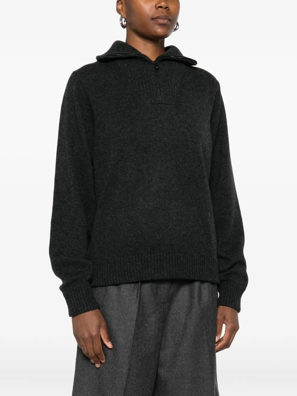 Свитер в рубчик с воротником на молнии Eric Bompard, серый