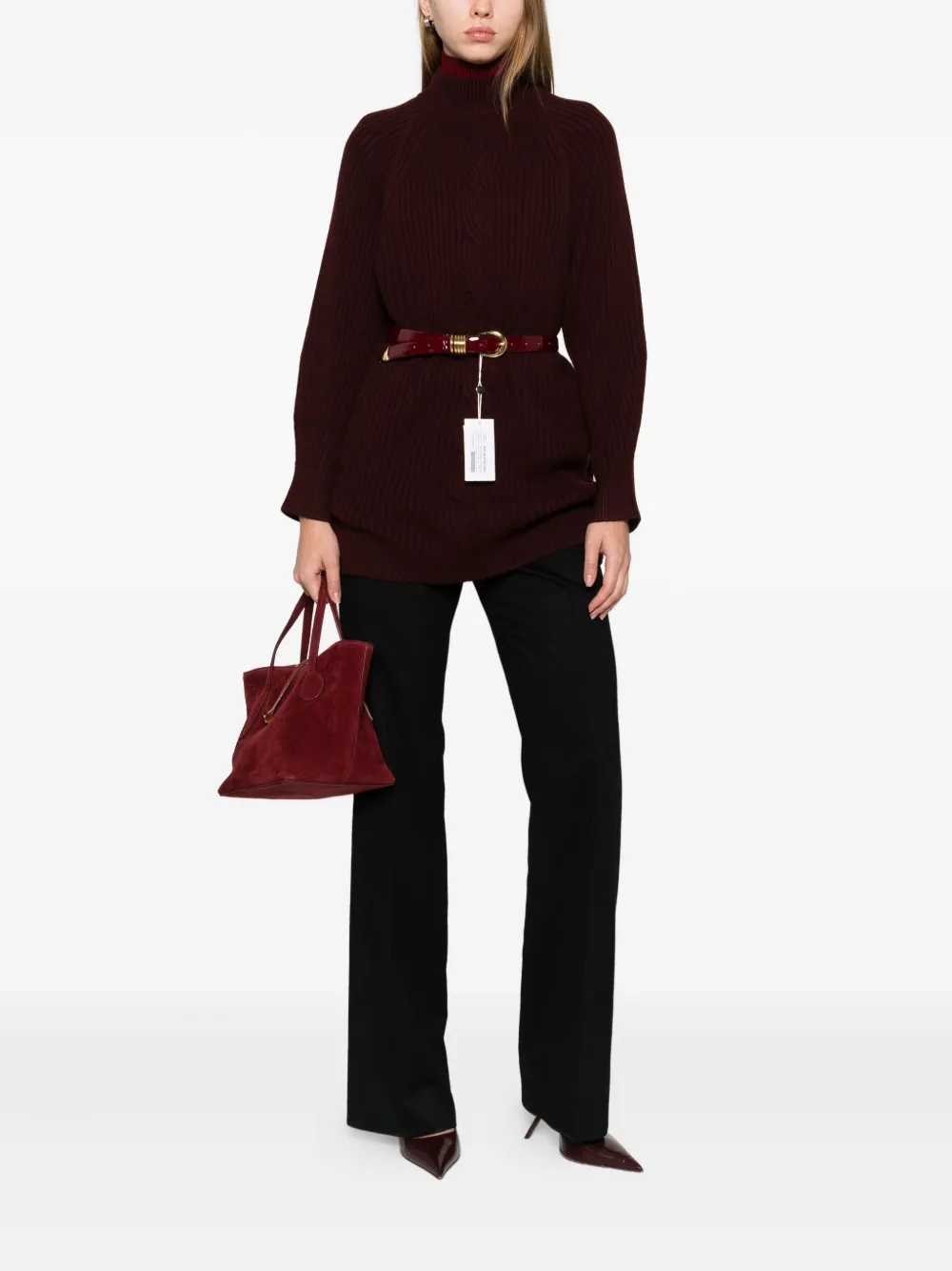 Темно-красный джемпер с косами, рубчатой вязкой, высоким воротом и длинными рукавами