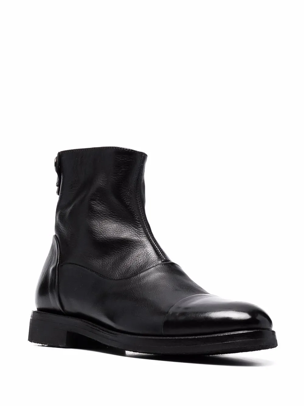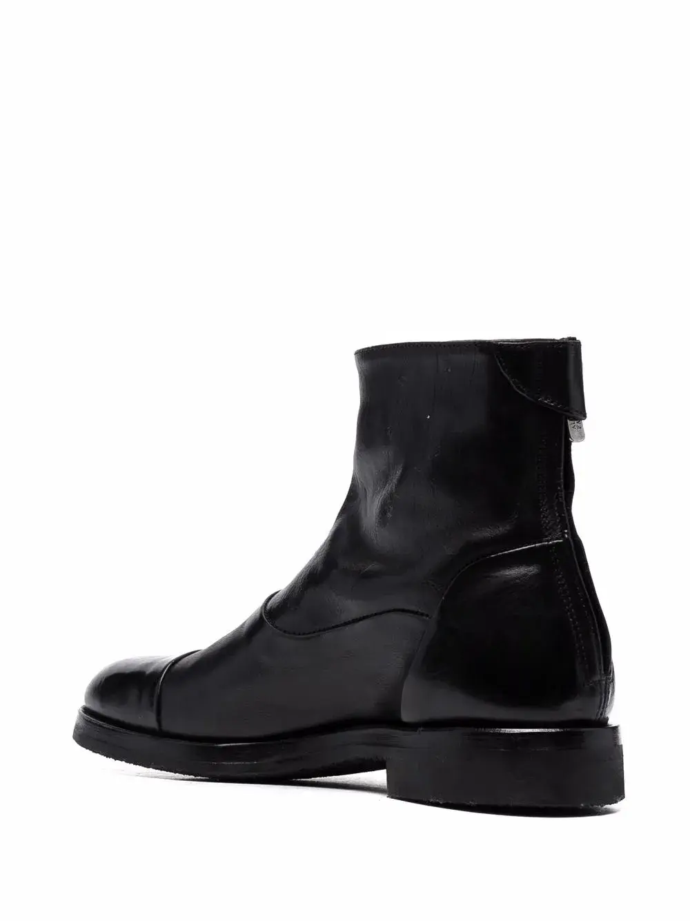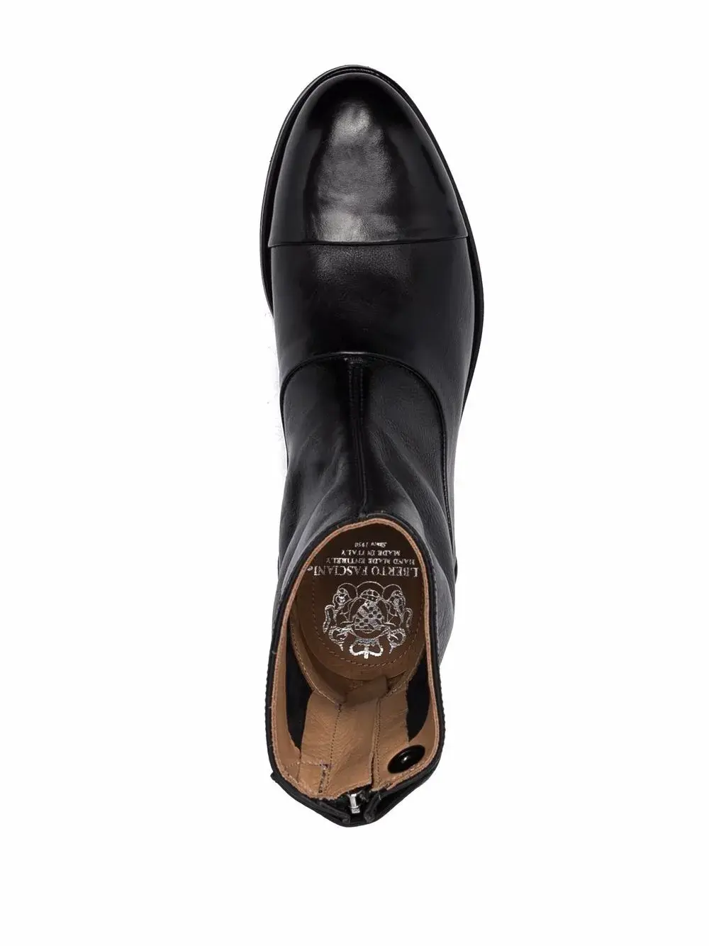 Кожаная подкладка, закругленный носок, застежка на молнии сзади, длина по щиколотку, низкий каблук, низкий каблук и резиновая подошва.
