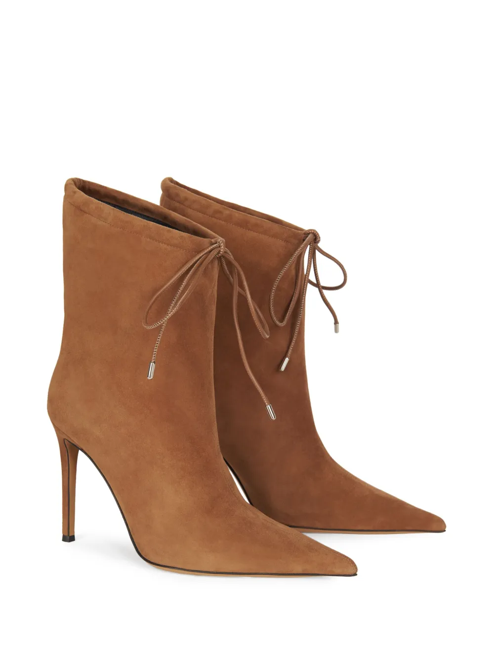 Карамельный, кожа, замша, заостренный носок, завязки спереди, кожаная стелька с логотипом, каблук на высокой шпильке и кожаная подошва.