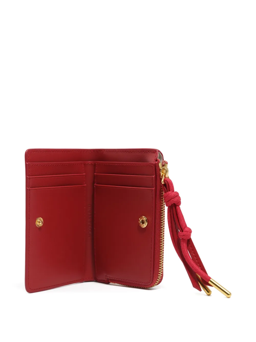 Красный цвет, застежка на молнии, отделения для карт, фурнитура золотистого оттенка, застежка на кнопку