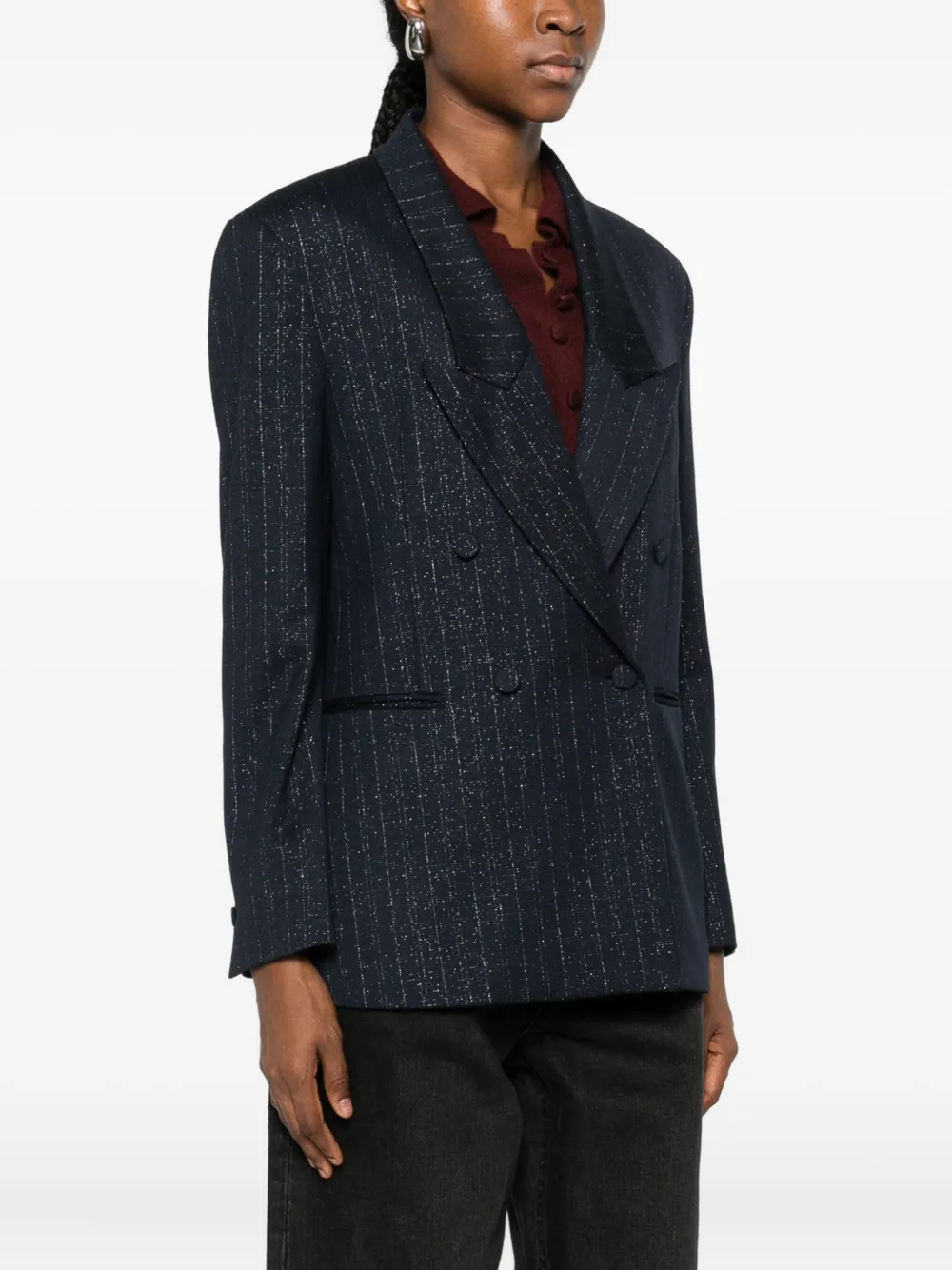 Полосатый двубортный пиджак Rame, синий 59 710₽