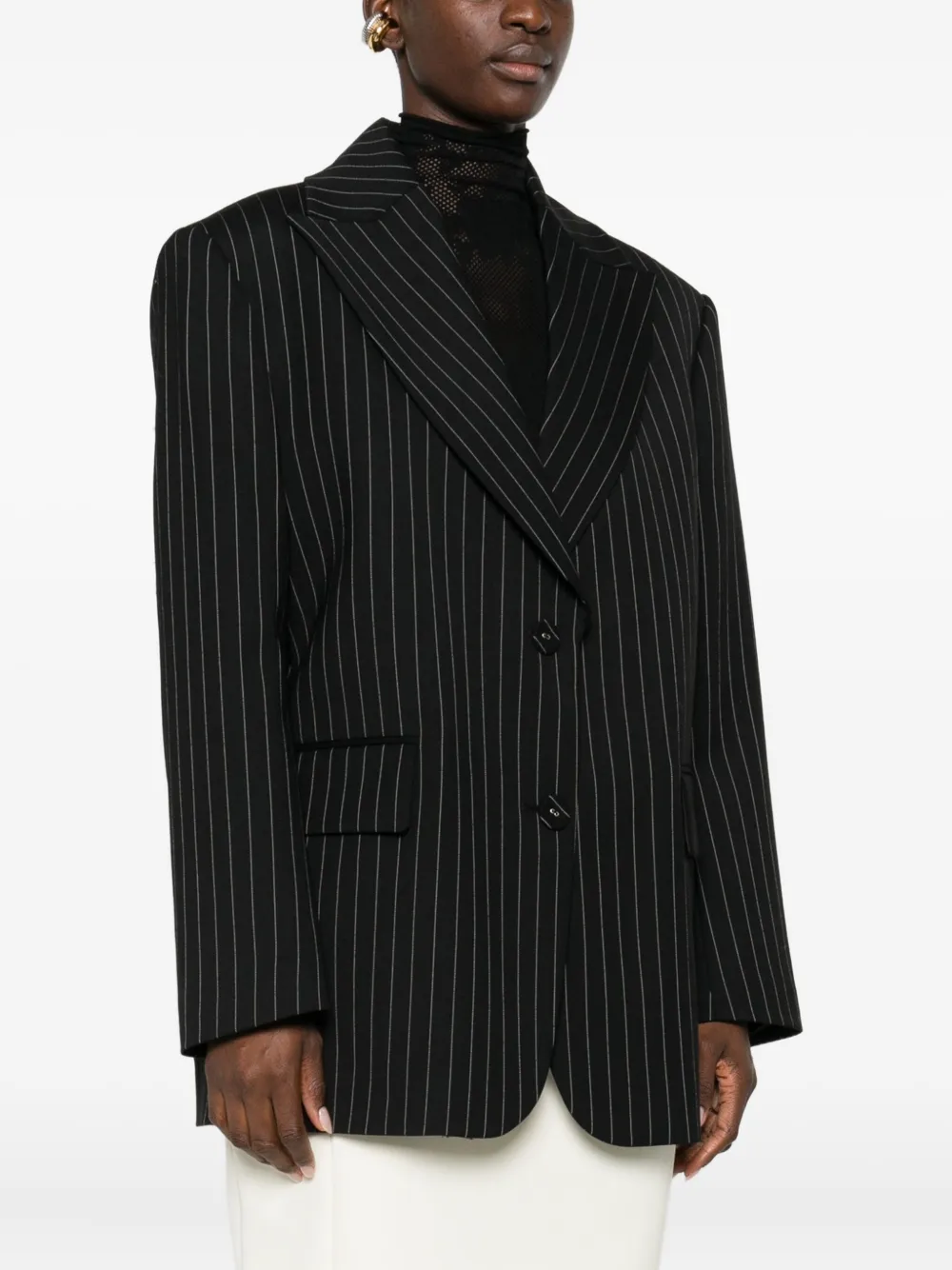 Приталенный пиджак в полоску с пуговицами Les Filles D'Eva, черный