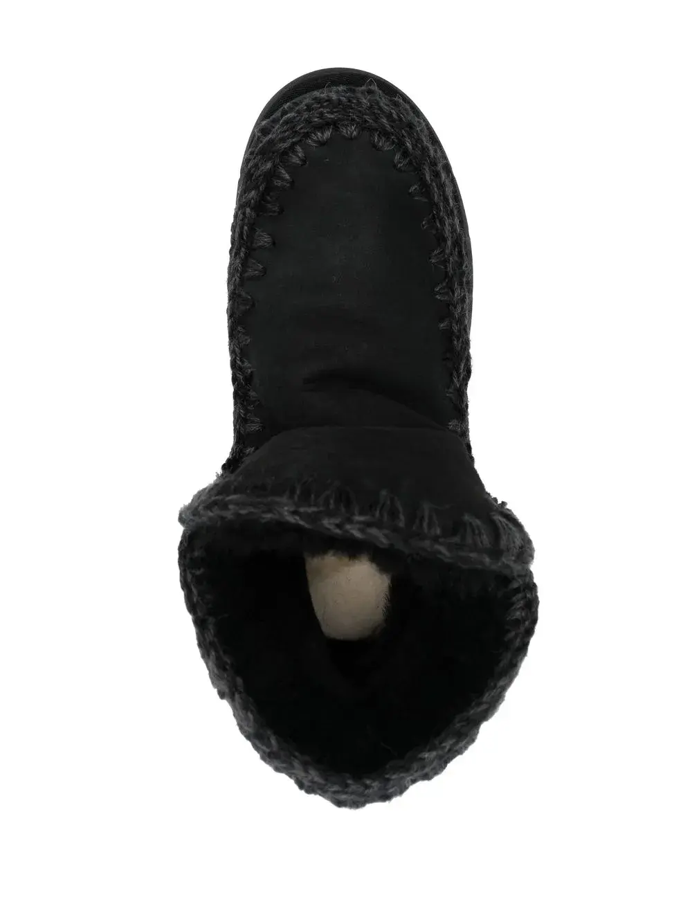 Черный, телячья кожа, строчка в тон, закругленный носок, высота по щиколотку и плоская резиновая подошва.