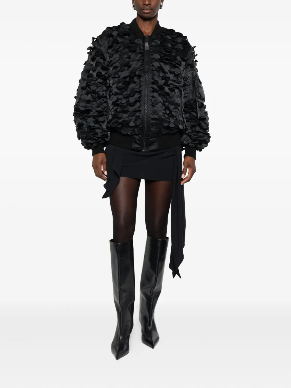 Черная аппликация, застежка-молния, ребристый низ, ребристые манжеты, карман на рукаве