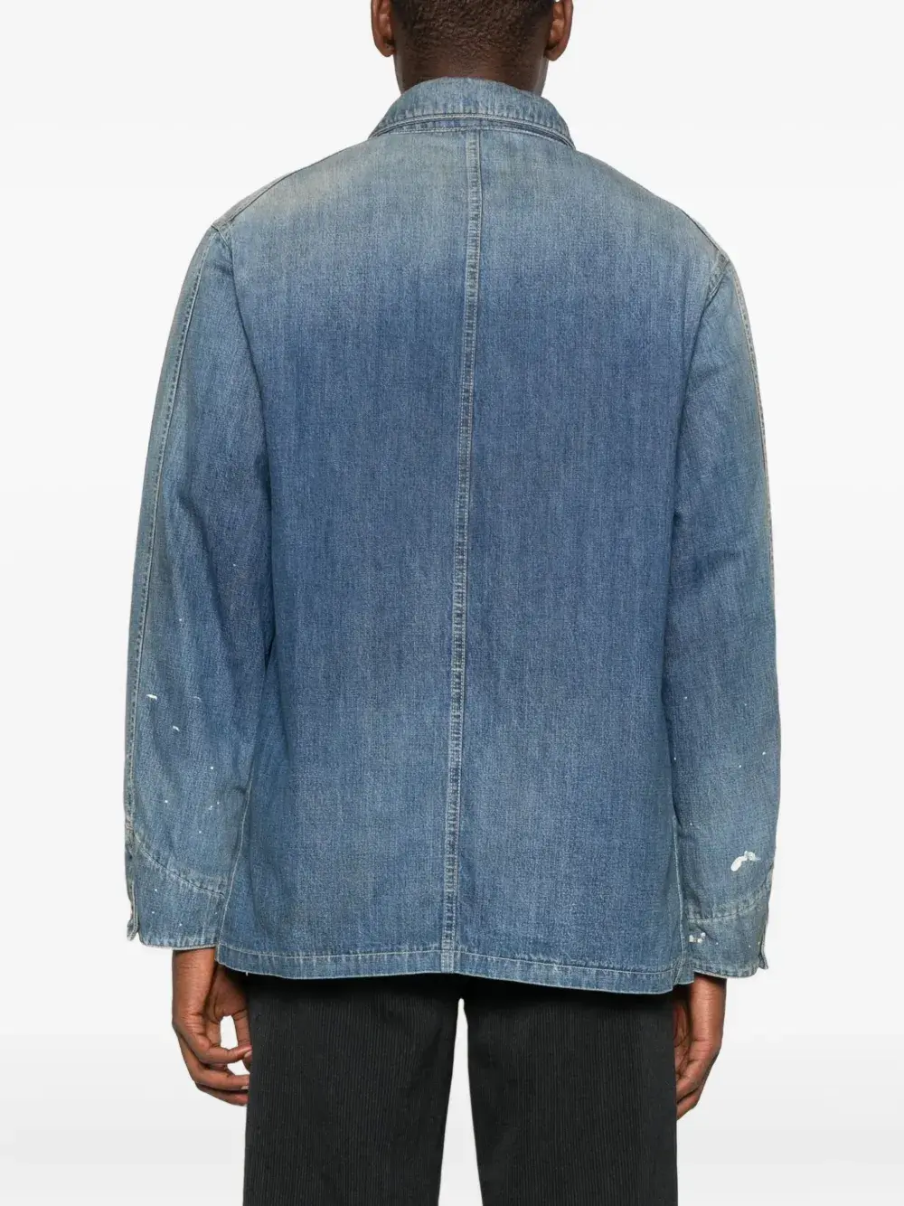 Синие передние карманы, застежка на пуговицы, отложной воротник, детали с эффектом брызг краски, длинные рукава
