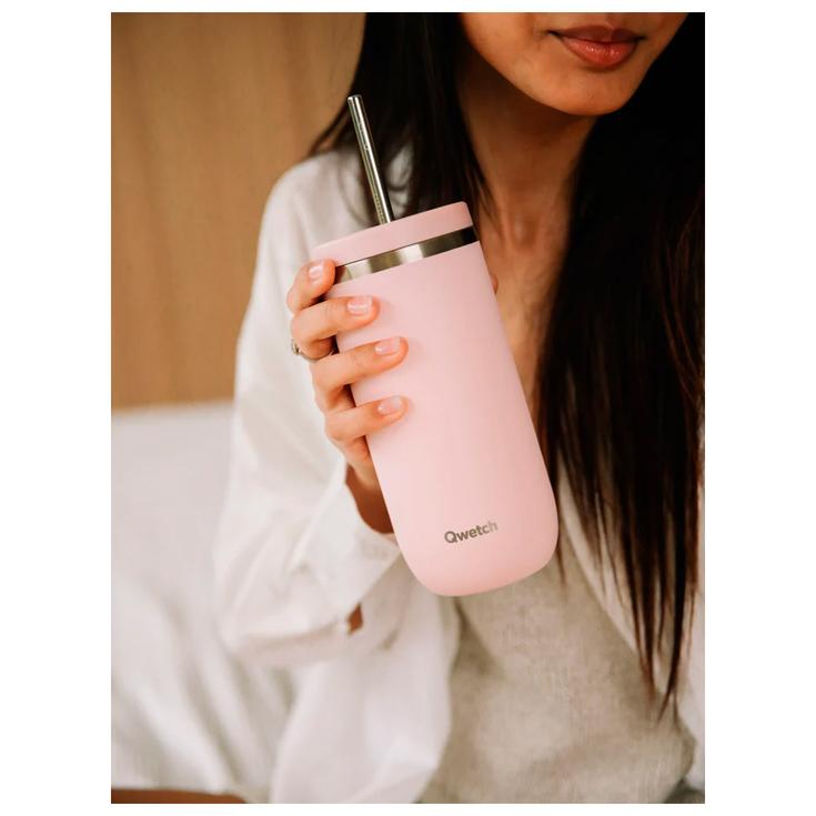 Стакан Qwetch Cold Cup объемом 600 мл изготовлен из переработанной нержавеющей стали (90%) и имеет крышку из полипропилена PP5 с силиконовым уплотнителем для защиты от протечек. Он сохраняет холодную температуру в течение 24 часов или 12 часов. Размеры 19 x 8,4 см и диаметр горлышка 8,3 см позволяют удобно разместить его в руке, легко наполнять и мыть. Уход: ручная мойка. Не рекомендуется мыть в посудомоечной машине.