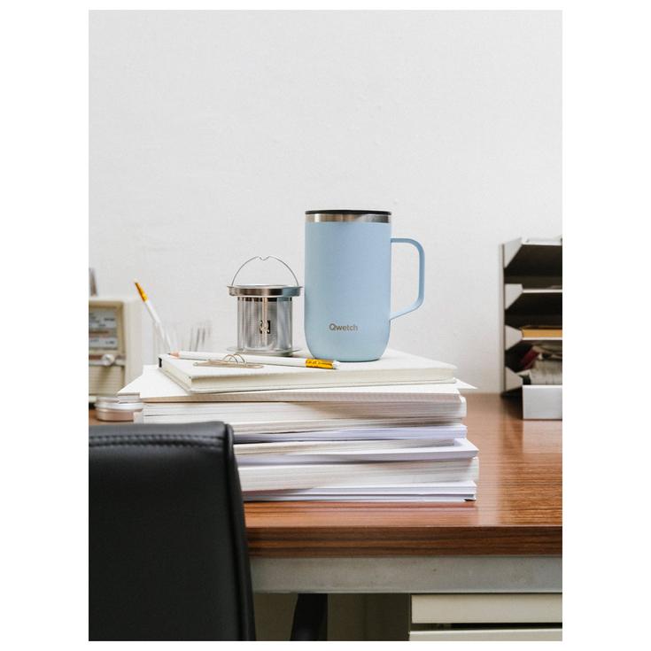 Кружка для чая Qwetch объемом 470 мл сочетает в себе конструкцию из переработанной нержавеющей стали с функциональным дизайном, включающим соответствующую крышку и съемный фильтр. Эта кружка предлагает подходящее решение для переноски горячих или холодных напитков благодаря эффективной теплоизоляции, которая позволяет ей сохранять свою температуру в течение нескольких часов. Конструкция также включает в себя полипропилен PP5 и силиконовый уплотнитель для обеспечения водонепроницаемости во время ежедневных поездок. Большое горлышко облегчает наполнение и очистку, а компактные размеры обеспечивают удобный захват.