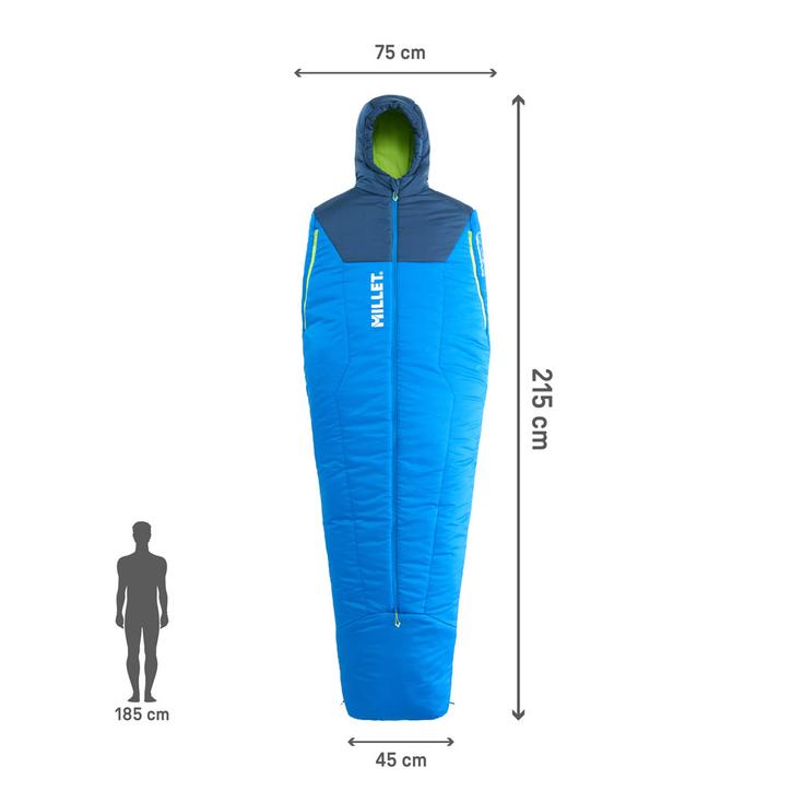 Спальный мешок Millet Bossons -2°C обеспечивает оптимальный комфорт в различных климатических условиях (температура комфорта от 0 до 5°C). Этот спальный мешок для взрослых, напоминающий кокон, обеспечивает максимальное тепло, уменьшая объем внутреннего пространства, требующего утепления, что делает его идеальным для прохладных ночей. Экологичный дизайн с использованием переработанных полиэфирных волокон в качестве утеплителя отражает стремление Millet к защите окружающей среды. Ткань 30D 350T Black Yarn Ripstop Polyester и 30D 350T Pongee Polyester Ripstop делают этот спальный мешок более прочным и долговечным. Внутренний клапан обеспечивает дополнительную защиту от холода, а двусторонняя молния позволяет подобрать идеальную температуру. Молнии по бокам служат отверстиями, чтобы вы могли высунуть руки наружу, не открывая весь спальный мешок.