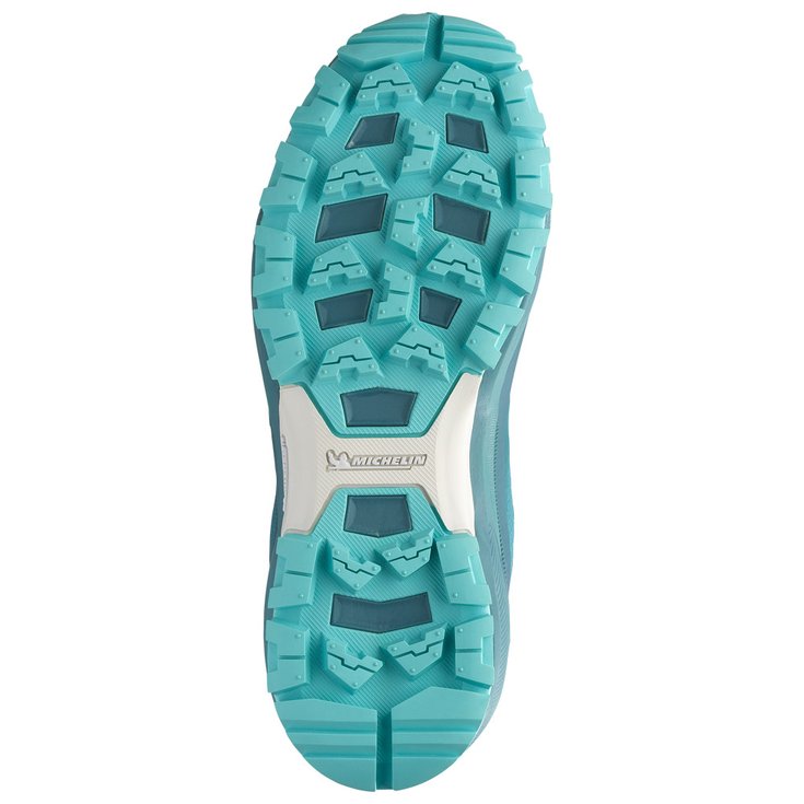 Подошва Confort Pro сочетает в себе амортизацию и высокую защиту стопы. Промежуточная подошва из ЭВА делает кроссовки легкими и гибкими, обеспечивая комфорт при беге по различным рельефам. Подошва Michelin Calenca гарантирует надежное сцепление и идеально подходит для горных троп и пересеченной местности.
