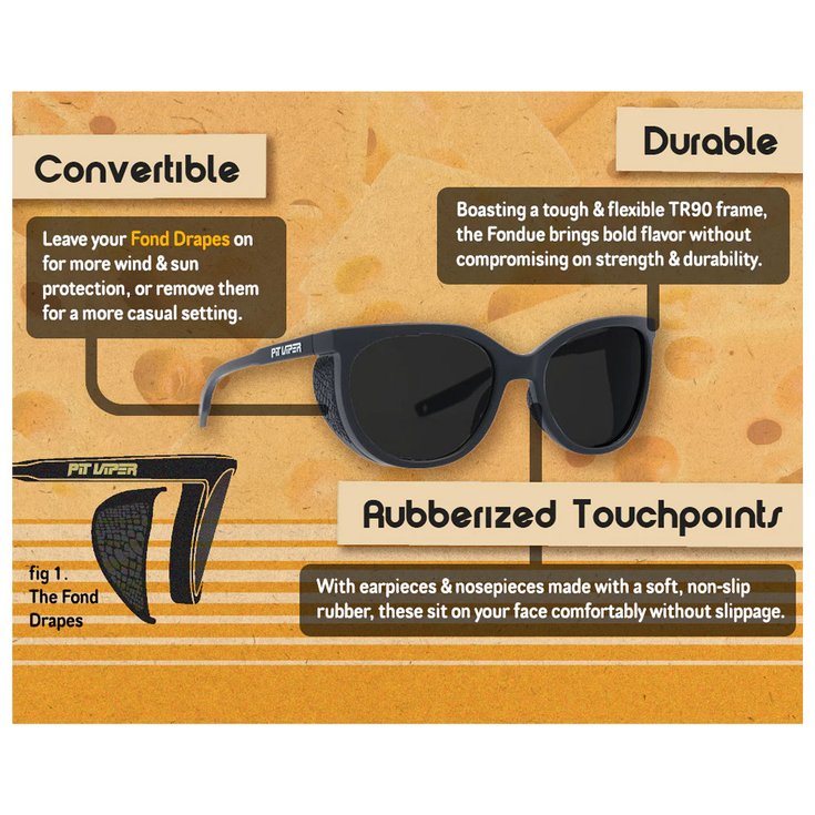 Солнцезащитные очки The Fondue от Pit Viper квадратной формы в ретро-стиле идеально подойдут для любого типа лица, как на курорте, так и в повседневной жизни. Они оснащены высококачественной оправой из материала Grilamid и поликарбонатными линзами для повышенной ударопрочности. Поляризованные линзы категории 3 уменьшают блики и обеспечивают естественную цветопередачу без искажений. Очки Fondue - идеальное решение для тех, кто ищет модный образ и комплексную защиту от солнца.