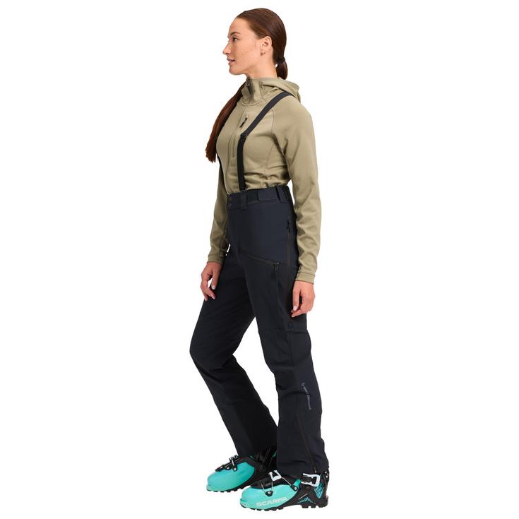 Женские брюки Black Diamond W Dawn Patrol обеспечивают надежную защиту в зимних условиях благодаря двухслойной мембране софтшелл и водоотталкивающей обработке DWR (долговечному водоотталкивающему составу), которая повышает их влагостойкость. Эластичная ткань, растягивающаяся в четырех направлениях, гарантирует оптимальную свободу движений, дополненную артикулированными коленями и обновленным кроем. Вентиляционные отверстия на молниях на бедрах обеспечивают циркуляцию воздуха, способствуя терморегуляции. Гетры для снега предотвращают попадание снега в лыжные или сноубордические ботинки, а молния облегчает надевание. Эта модель оснащена карманом на правом бедре с уменьшенным карманом для лавинного датчика и креплением, а также усиленными панелями на манжетах для большей прочности.