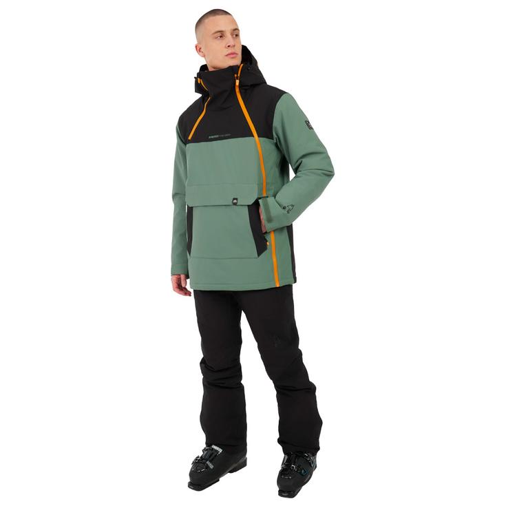 Основные швы водонепроницаемы, что минимизирует проникновение воды. Молнии для вентиляции под мышками обеспечивают улучшенную терморегуляцию при длительных нагрузках. Модель оснащена несъемным капюшоном, регулируемыми манжетами на липучках и рукавами с петлями для больших пальцев для лучшего сохранения тепла. Свободный крой снежной куртки Protest Prtlado обеспечивает свободу движений, а два боковых кармана на молнии и собственный карман для ски-пасса дополняют эту модель.