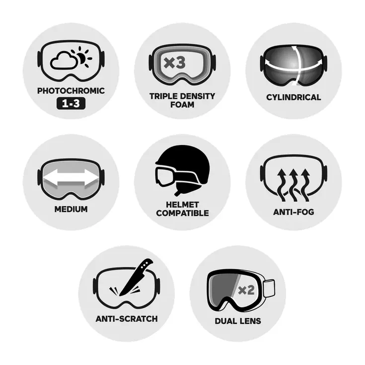 Эти горнолыжные очки покрыты трехслойным пеноматериалом, который обеспечивает максимальный комфорт и эффективную защиту от холода и ветра. Силиконовый ремешок обеспечивает надежную фиксацию вашего горнолыжного шлема.