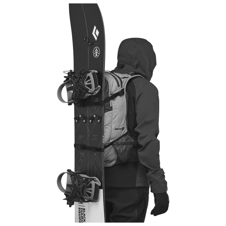 Легкий рюкзак Black Diamond Dawn Patrol 25 изготовлен преимущественно из переработанных материалов. Благодаря снего- и водоотталкивающей пропитке он подходит для любых погодных условий и любых видов отдыха, будь то день на склоне, соревнования по ски-альпинизму или лыжный поход. Благодаря объему 25 литров он предлагает достаточно места для хранения самых разных вещей. Рюкзак оснащен несколькими карманами и отделениями для организации снаряжения и переноски, например, питьевой системы. Для этого предусмотрен утепленный наплечный карман. Снаружи предусмотрены различные крепления для лыж или сноуборда, шлема и двух ледорубов. Благодаря эргономичным подвескам рюкзак адаптируется к движениям тела.