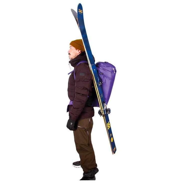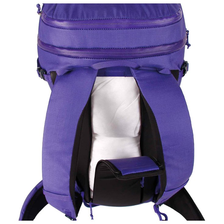 Рюкзак также имеет специальное отделение для защитного снаряжения, такого как лопата и щуп, а также специальное отделение для горнолыжных очков. Диагональное и А-образное крепление для лыж, а также держатель для ледоруба являются неоспоримыми преимуществами для альпинистов и любителей ски-туризма.