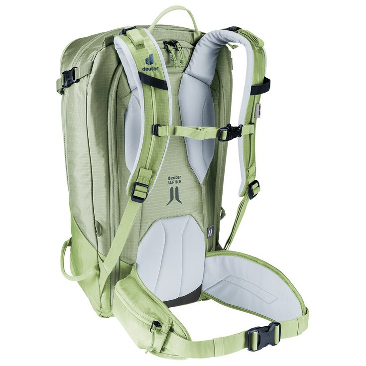 Рюкзак Deuter Freerider 28 SL имеет объем 28 литров и специальный отсек для лавинного снаряжения (лопата, лавинный щуп, лавинный датчик). Он оснащен несколькими внутренними карманами и внешними креплениями для таких вещей, как ледоруб и горнолыжный шлем. Водонепроницаемое внутреннее отделение позволяет разместить мокрую одежду. Специальное отделение предусмотрено для питьевой системы.
