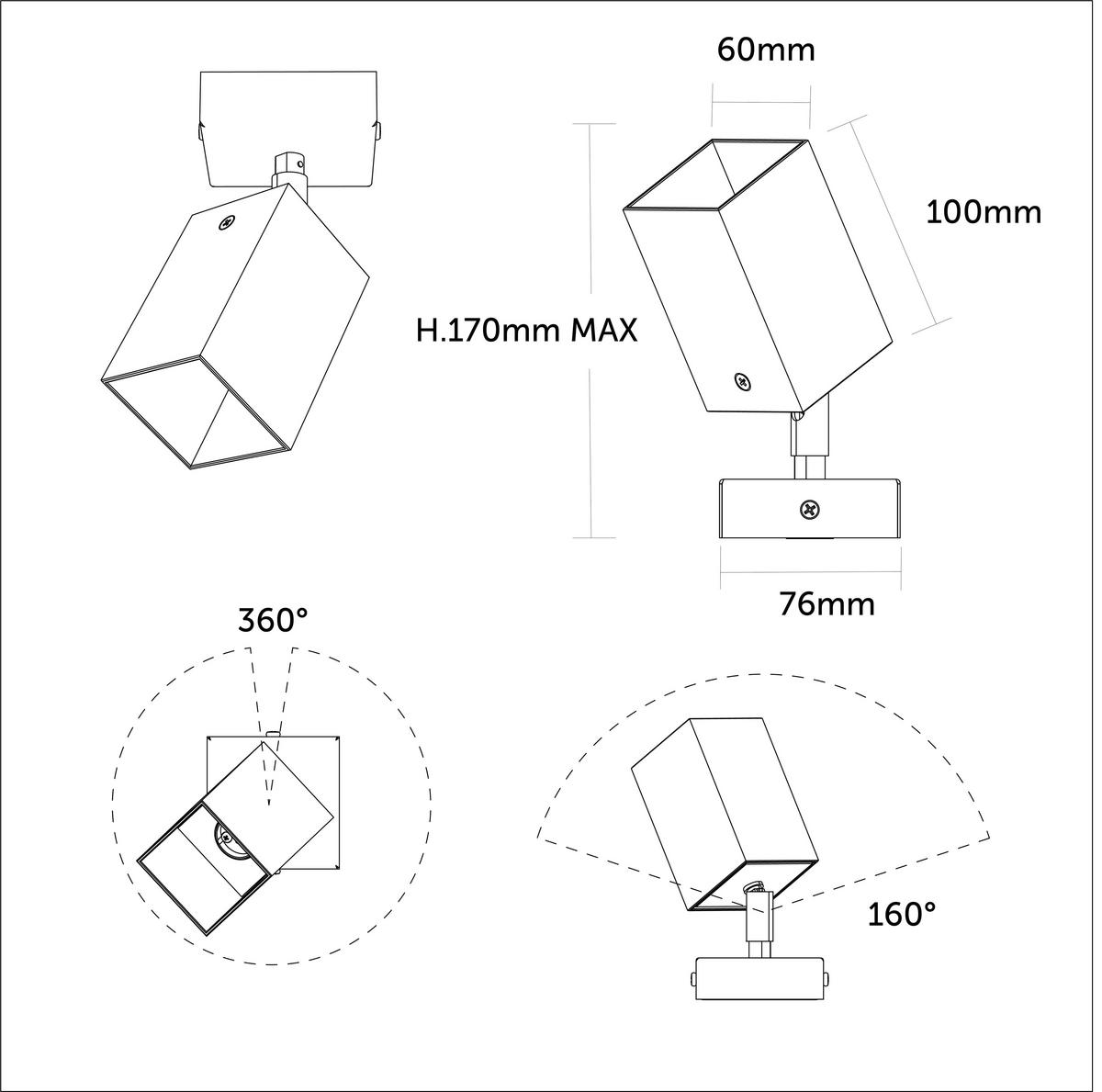 Вращение: точечный светильник оснащен шарниром, который позволяет наклонять и вращать его на 360°, предлагая широкий угол освещения для удовлетворения различных потребностей и идеальной адаптации к любому пространству.